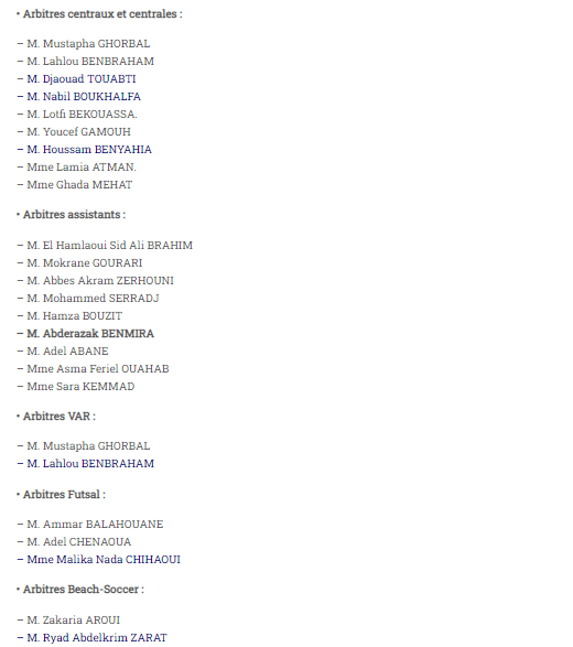 ونقل الموقع الرسمي للاتحاد الجزائري لكرة القدم، قائمة الحكام التي تم المصادقة عليها من المكتب الفيدرالي.