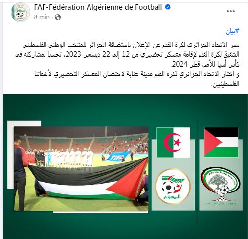 يرتقب أن يلتحق المنتخب الفلسطيني، شهر ديسمبر الجاري، بالجزائر لإجراء تربص تحضيري تحسبا للمشاركة في كأس أمم آسيا 2024.