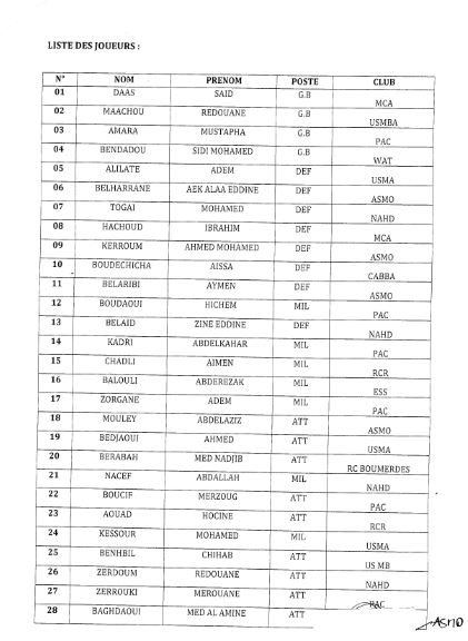هذا وعرفت قائمة المنتخب الخاصة بالتربص القادم تغييرات طفيفة مُقارنة بقائمة التربص الحالي.