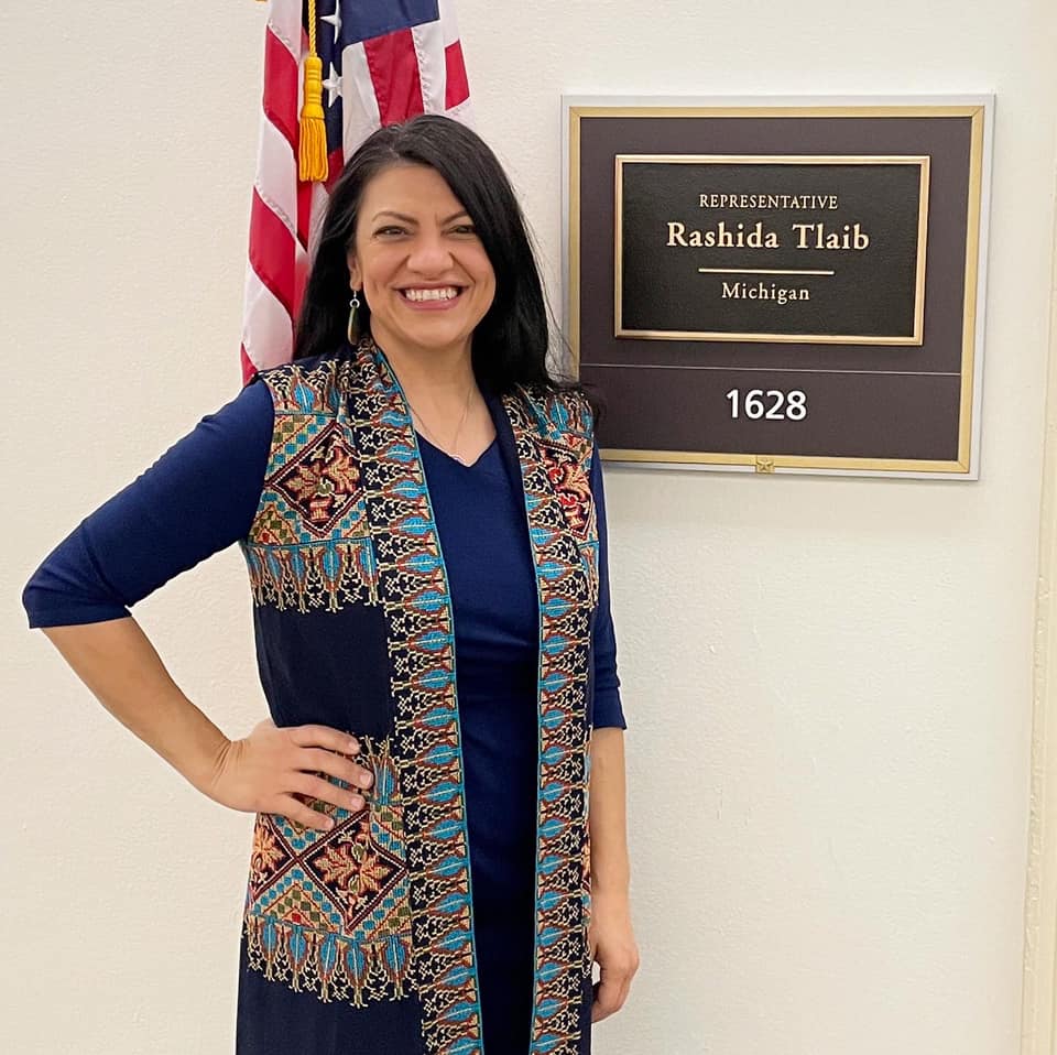 وتابعت رشيدة طليب “أنا من أوائل المسلمات وأول فلسطينية في الكونغرس، وأردت تكريمهما بارتداء زي فلسطيني مطرز”.