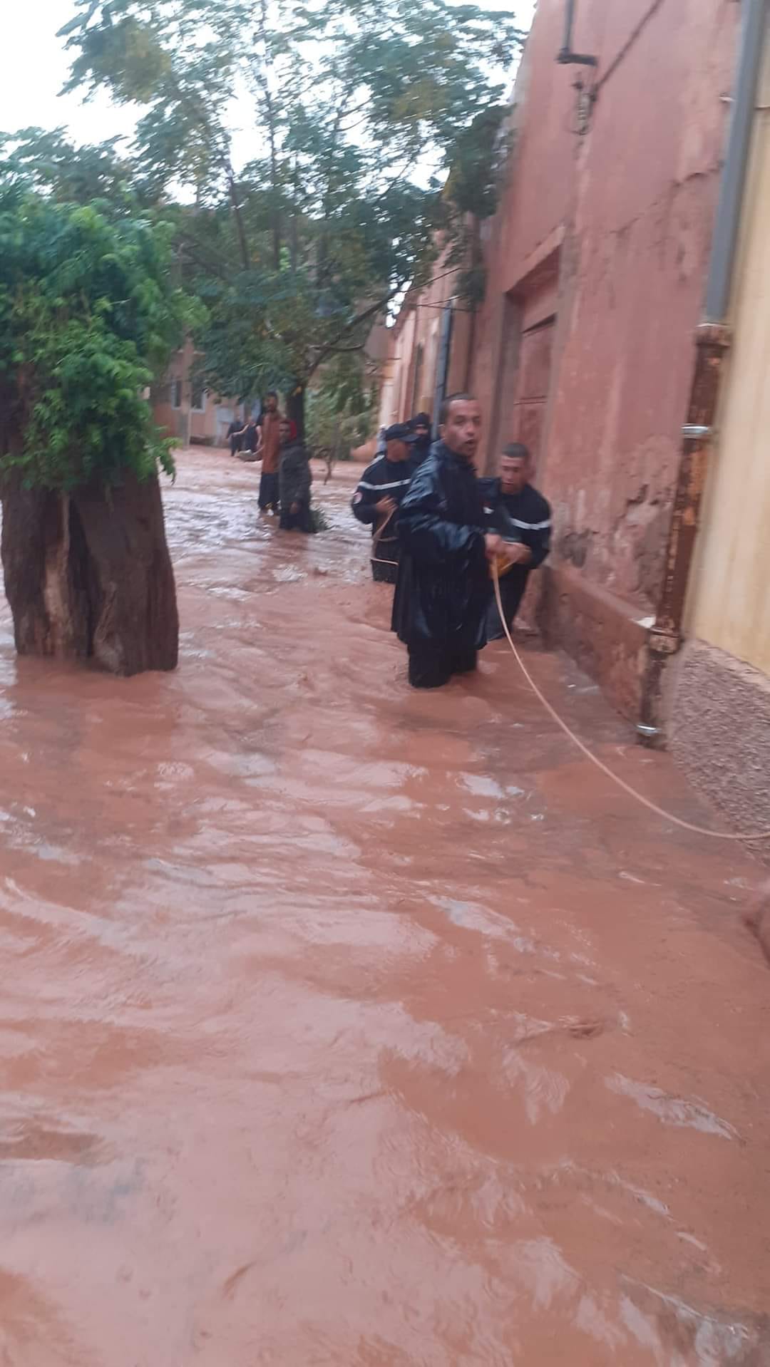 فيما تم إنقاذ 05 اشخاص وسط مدينة العين الصفراء بسبب ارتفاع منسوب المياه.