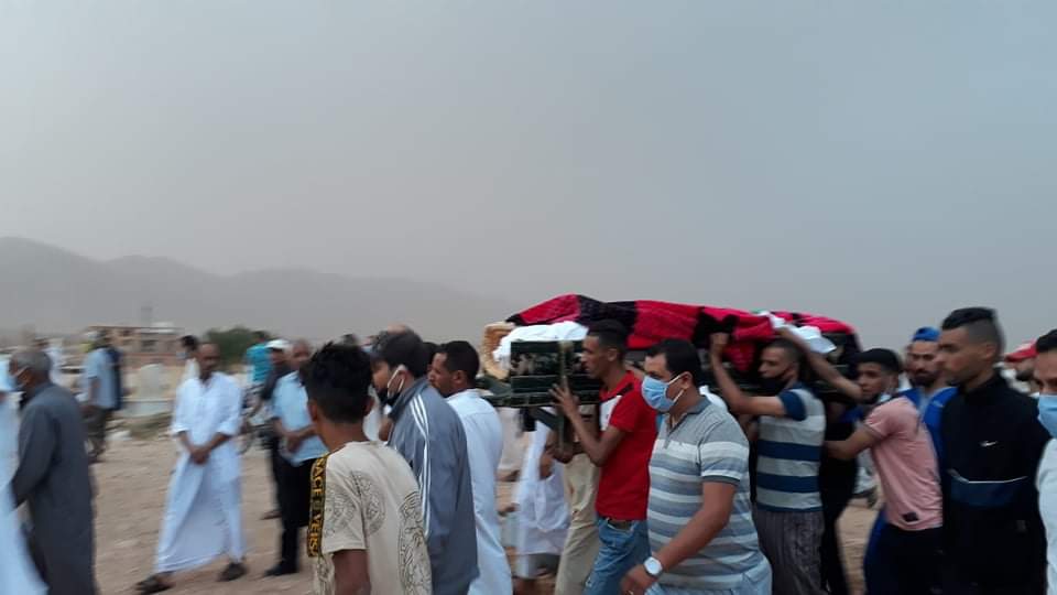 وحضر مراسيم الجنازة كل من السلطات المحلية وكذاجماهير غفيرة من ساكنة ولاية النعامة إضافة إلى عائلة الفقيد واقاربه.