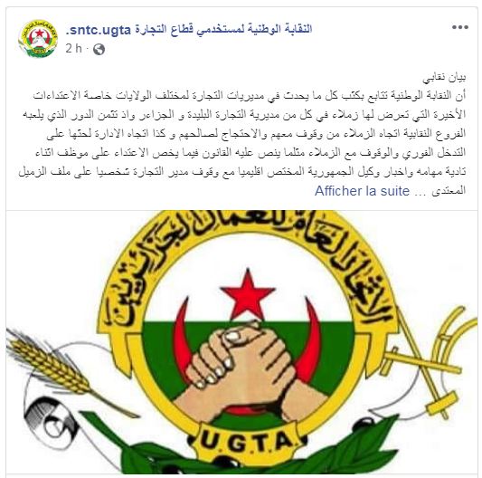 وقالت النقابة في بيان لها نشرته على صفحتها الرسمية في فايسبوك، أنها تتابع عن كثب كل ما يحدث في مديريات التجارة لمختلف الولايات.
