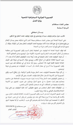 النيابة العامة لمجلس قضاء مستغانم توضح حول تجاوزات في حق موقوفات بأمن الولاية