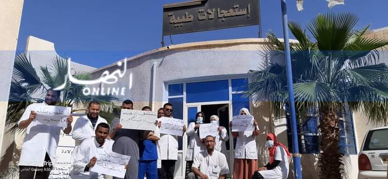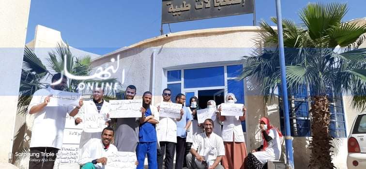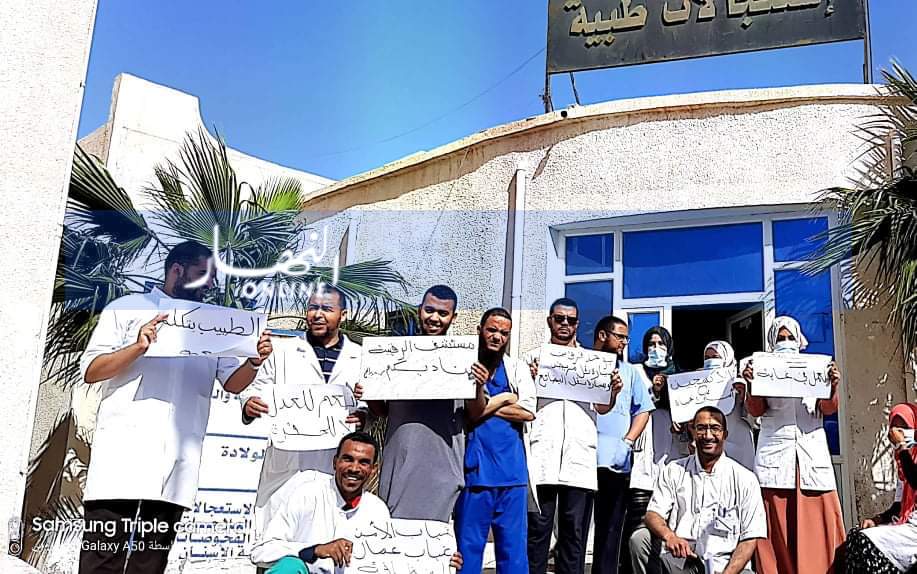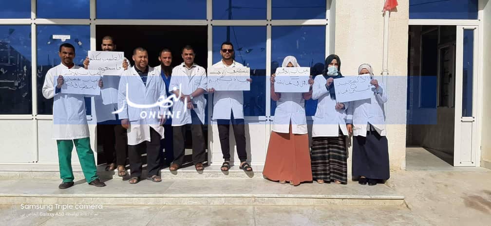 اقدم الكادر الطبي من ممرضين واطباء على الاحتجاج امام وحدة المتعددة الخدمات بالرقيبة التي تغطي الجهة الشمالية للولاية.