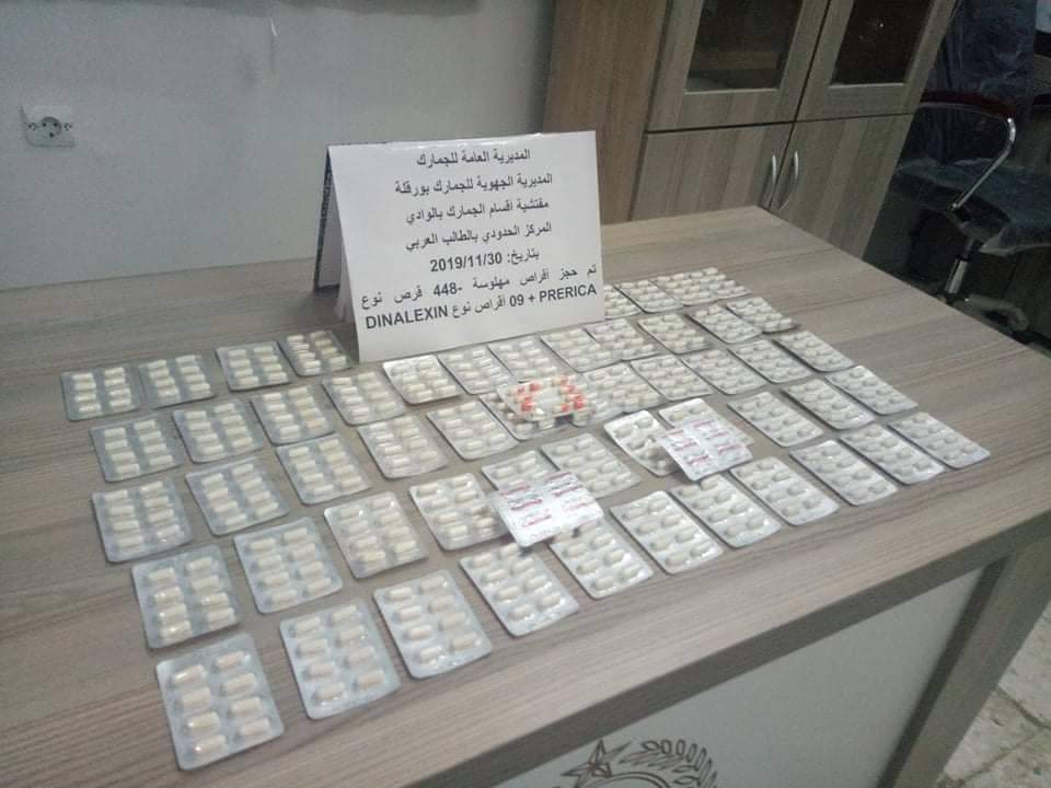 تمكن أعوان التفتيش على مستوى المعبر الحدودي الطالب العربي بالوادي من توقيف امرأة تونسية وبحوزتها كمية من الحبوب المهلوسة.