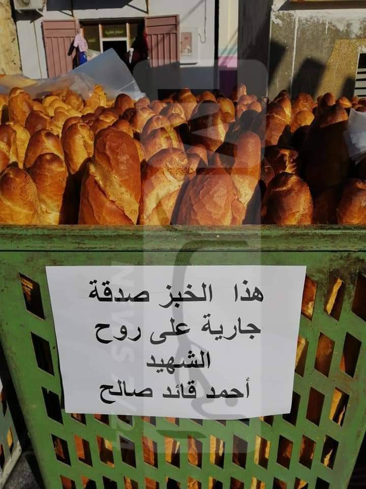 اين وضعت سلات الخبز في ساحة الاستقلال وكتب عليها الخبز مجاني للجميع معروف على روح الفقيد المجاهد أحمد ڨايد صالح.