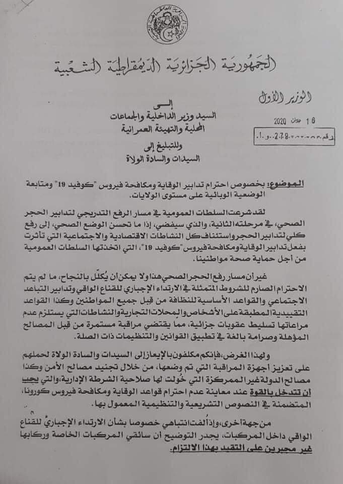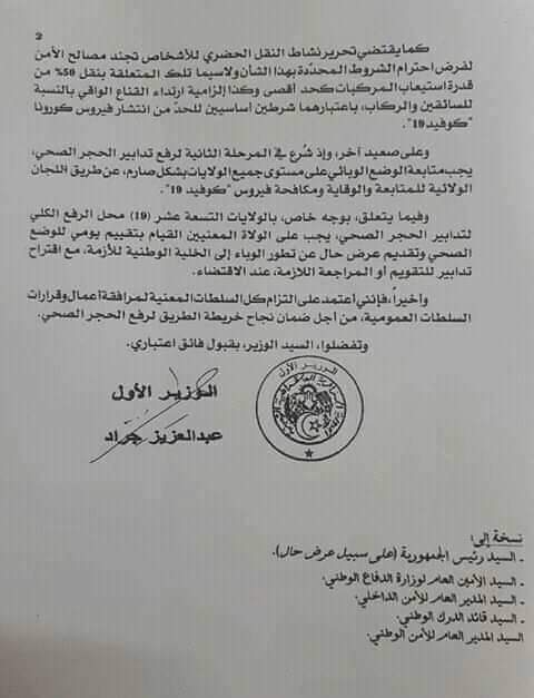 وأشارت التعليمة، إلى أنه تم تجنيد مصالح الأمن لفرض احترام شروط التباعد في وسائل النقل العمومي،