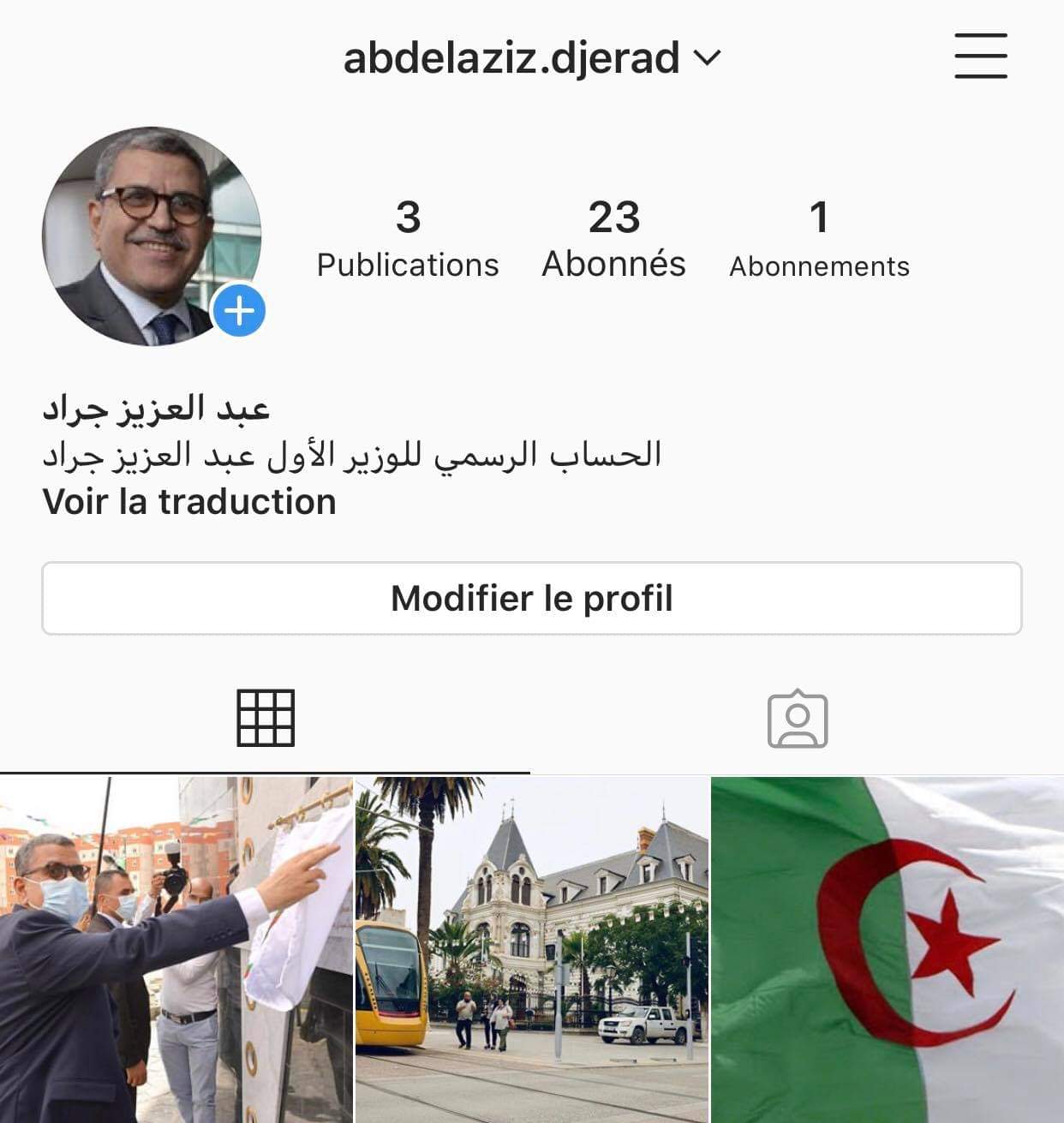 فتح الوزير الأول، عبد العزيز جراد، حسابا رسميا له، على موقع تبادل الصور والفيديوهات “انستغرام”.