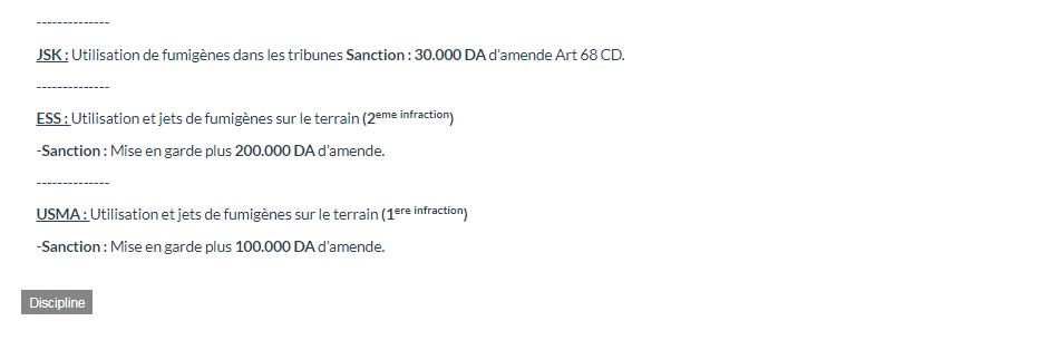 بينما تم معاقبة شباب قسنطينة، بـ 6 ملايين سنتيم، بسبب استعمال أنصاره للألعاب النارية، مقابل غرامة بقيمة 4 ملايين لنجم مقرة، بسبب التسيير السيء للمباراة.