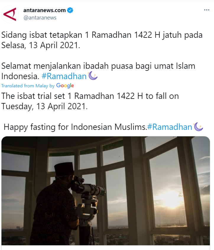 أعلنت الهيئة الدينية في اندونيسيا، اليوم الاثنين، عن ثبوت رؤية هلال شهر رمضان الكريم، وأن يوم 12 أفريل متمم شعبان.