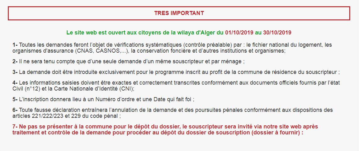 وانطلقت التسجيلات، بداية من 1 أكتوبر على أن تتواصل إلى غاية 30 من نفس الشهر، عبرالرابط http://lpa.wilaya-alger.dz/.