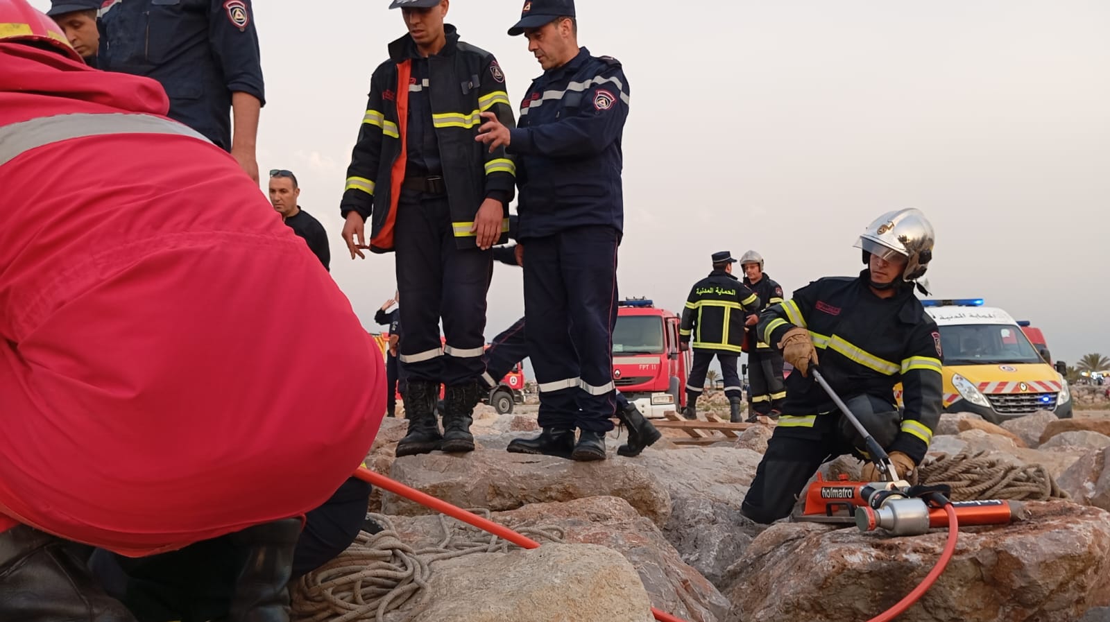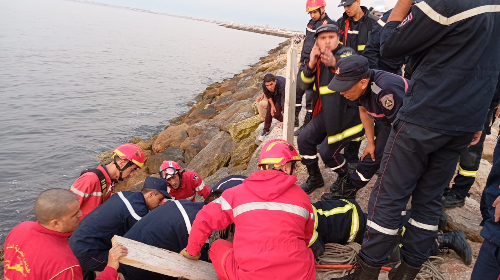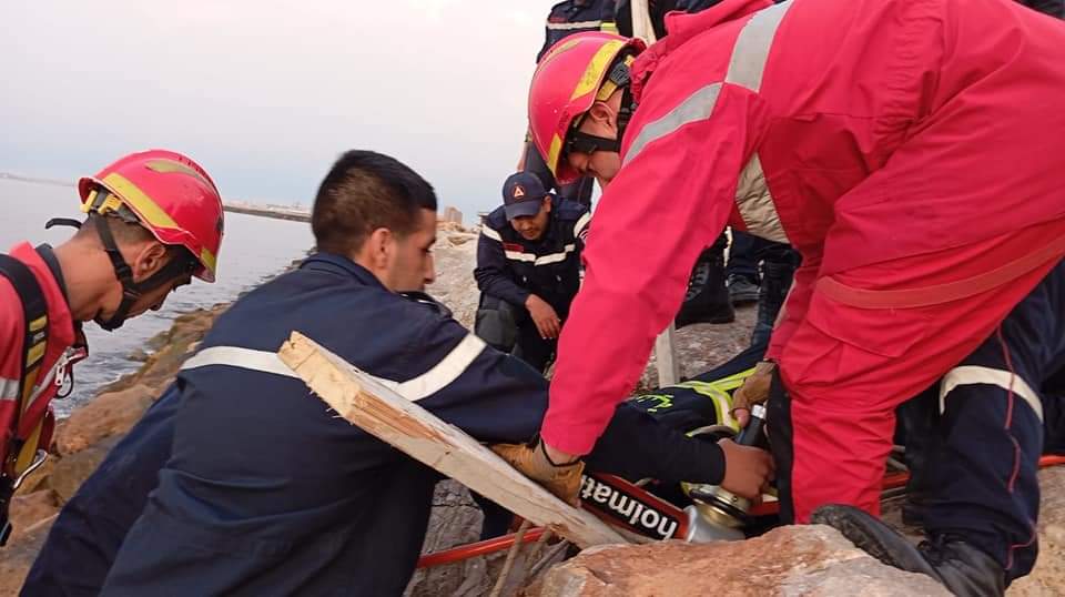 انقاذ شخص من تحت الصخور بشاطئ الصابلات في العاصمة