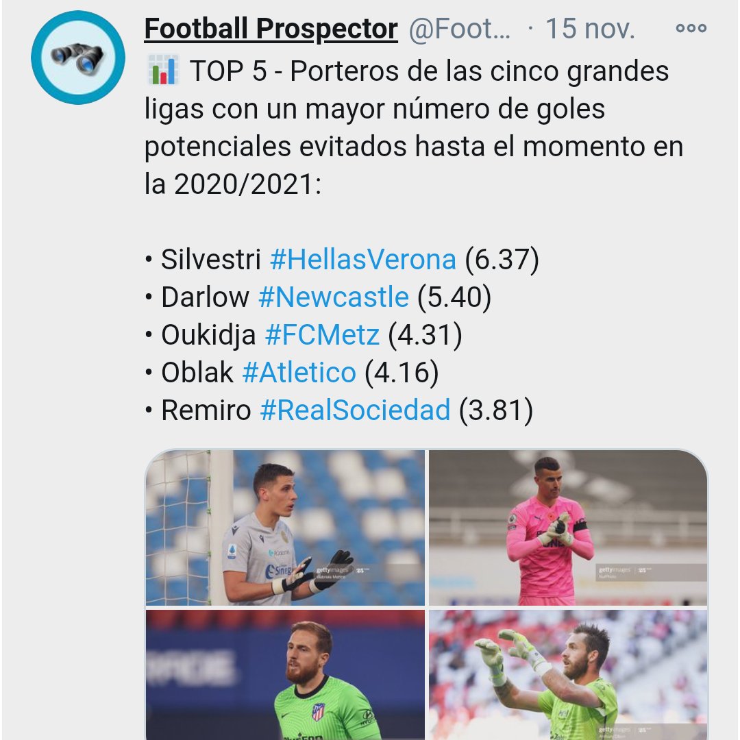 وتقدم ألكسندر أوكيدجا، في هذا التصنيف على حارس أتليتيكو مدريد أوبلاك (4.16)، وحارس ريال سوسيداد راميرو (3.81)، بينما عادة الصدارة للحارس سيلفيتسر من هيلاس فيرونا (6.37)، متبوعا بدارلو حارس نيوكاستل (5.40).