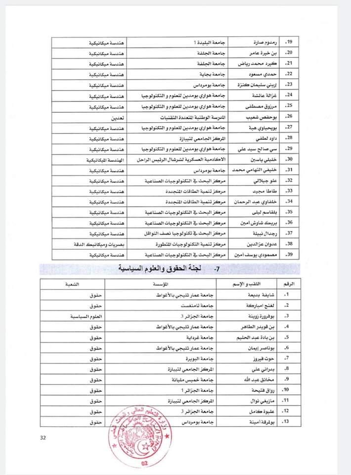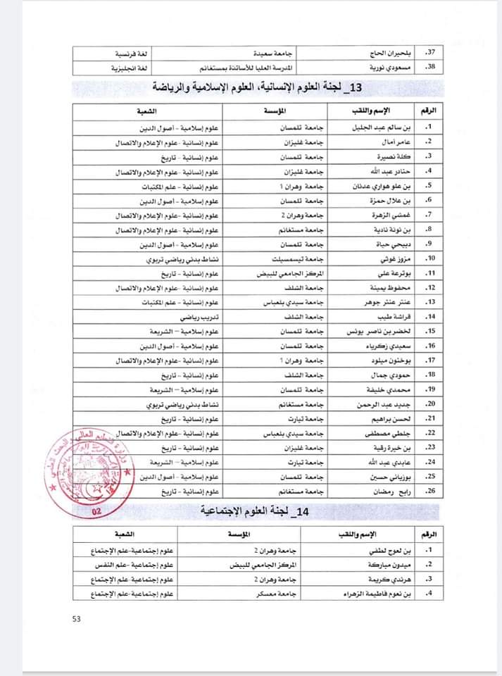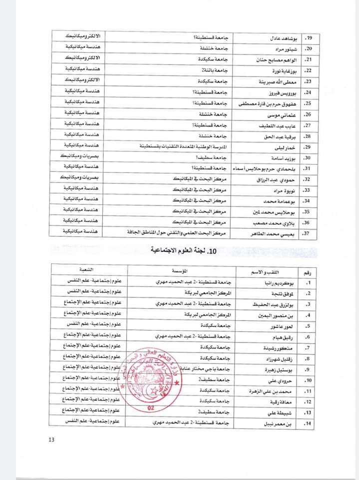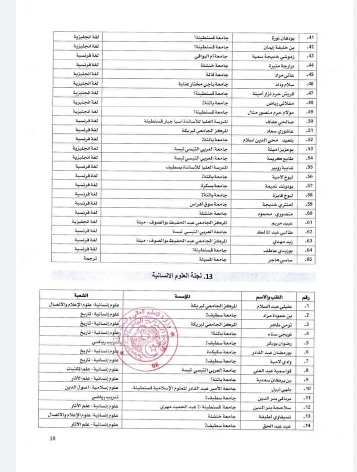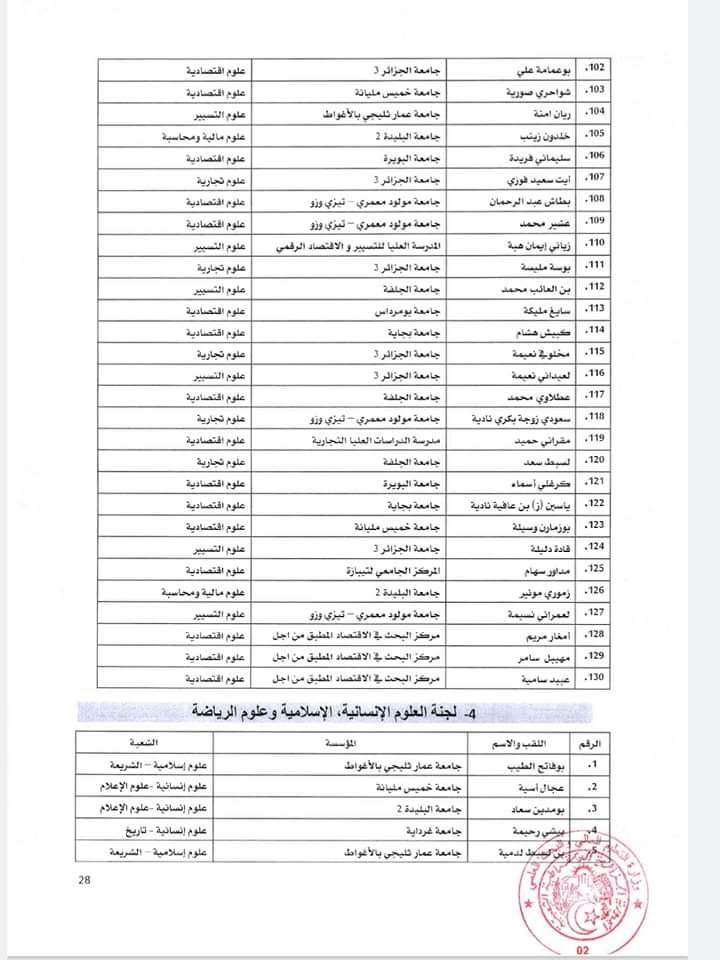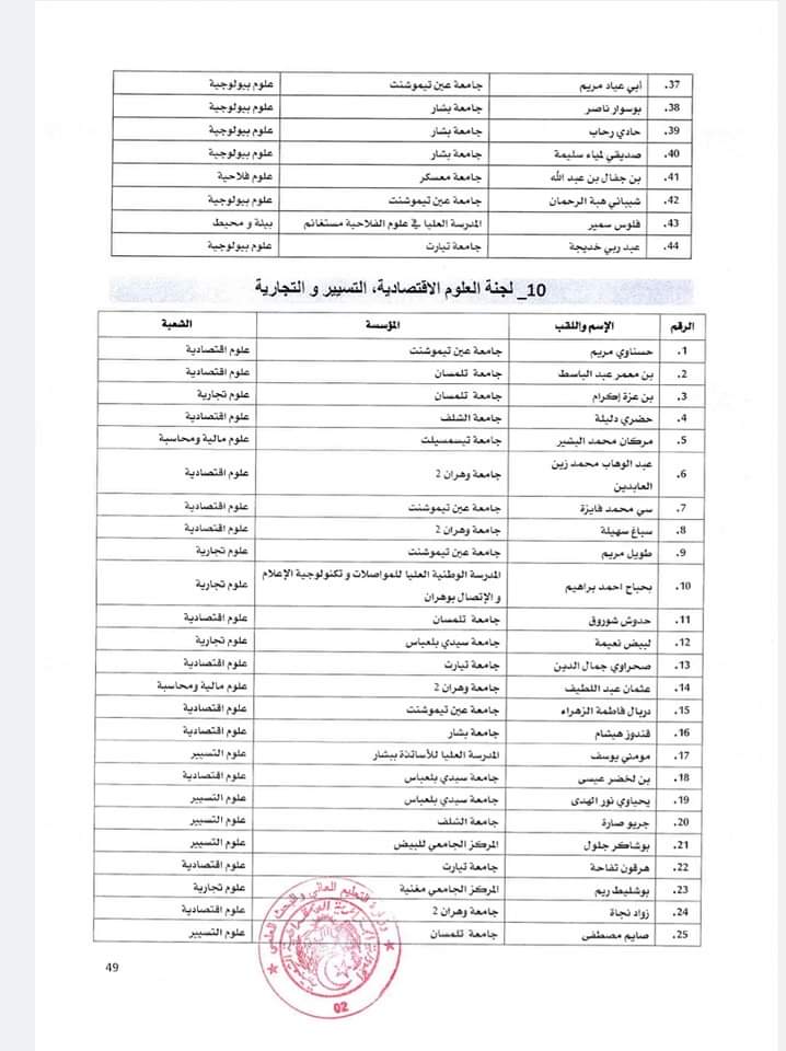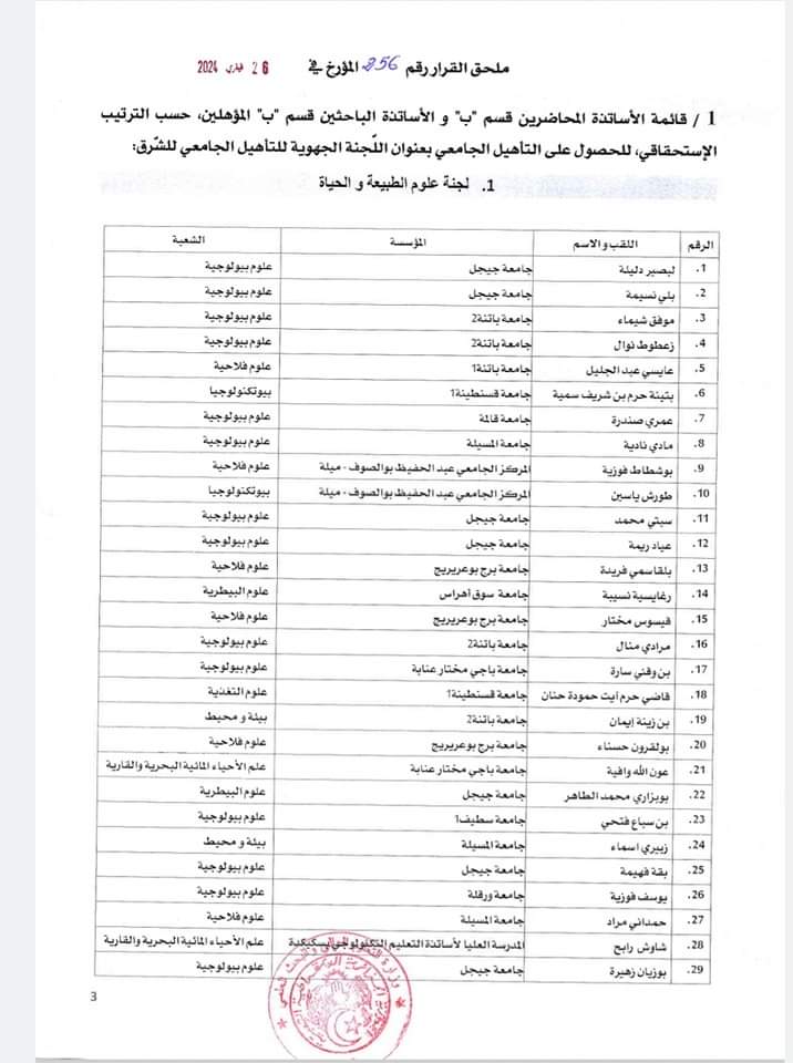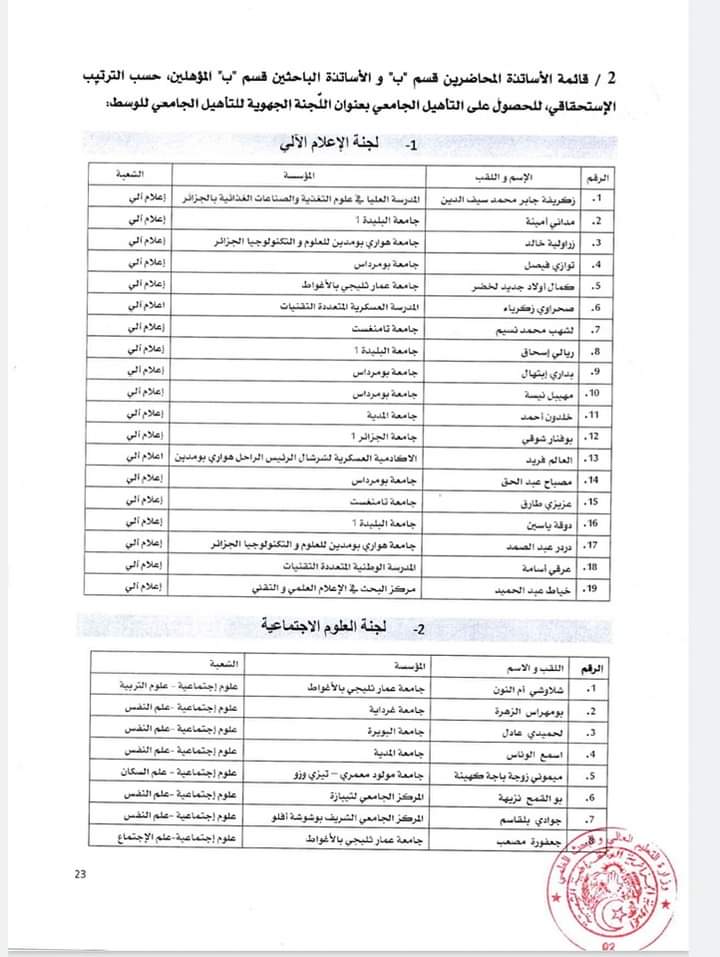 ويعتبر الأساتذة المحاضرون قسم “ب” المبينة ألقابهم وأسمائهم في القائمة، مؤهلين حسب الترتيب الاستحقاقي. للحصول على التأهيل الجامعي والترقية إلى رتبتي أستاذ محاضر قسم “أ”، وأستاذ بحث قسم “أ”.