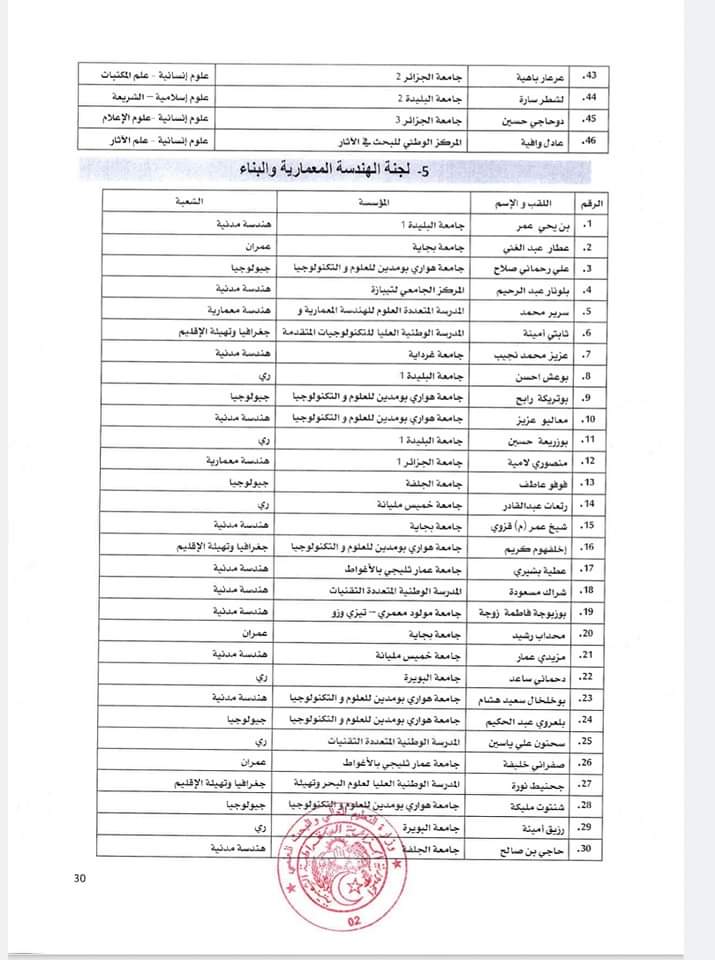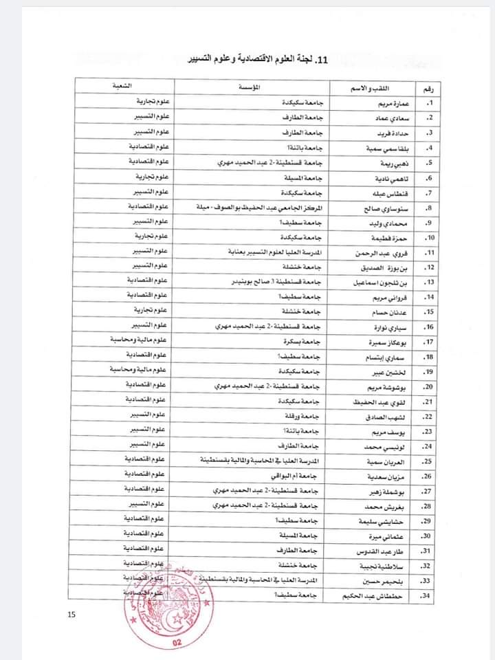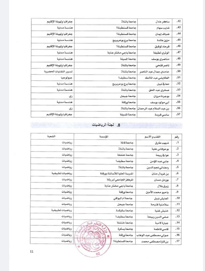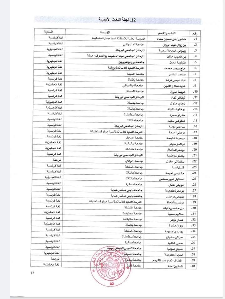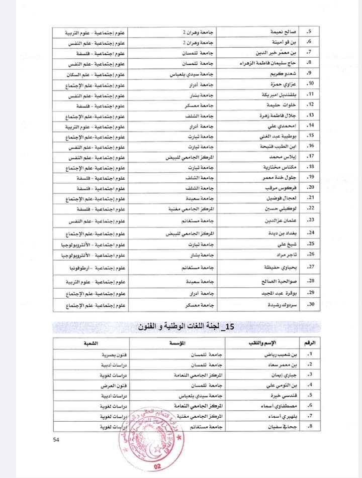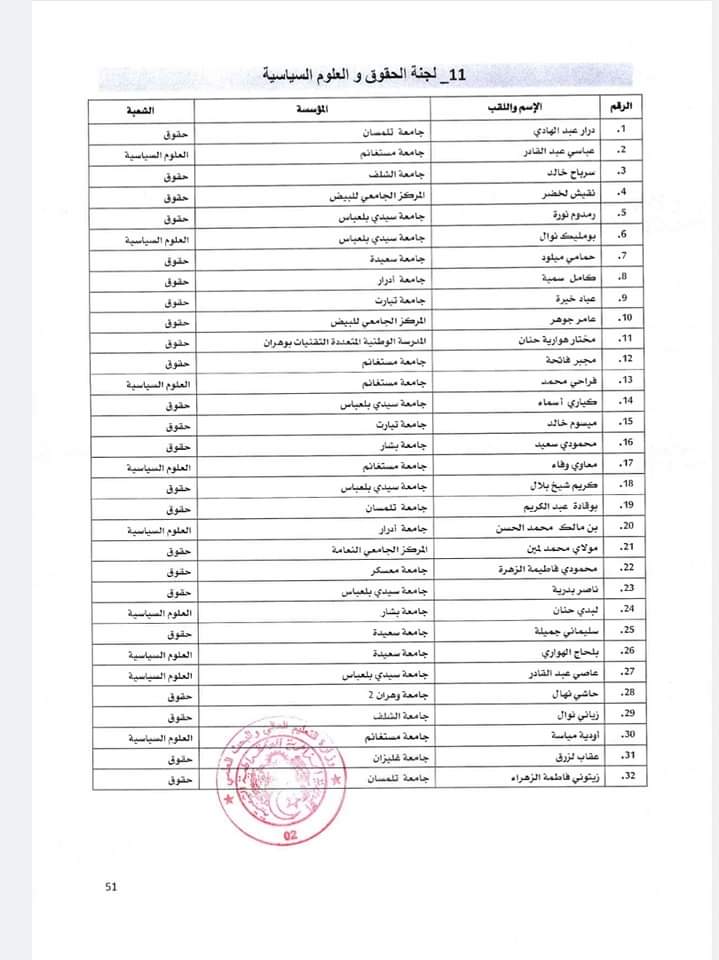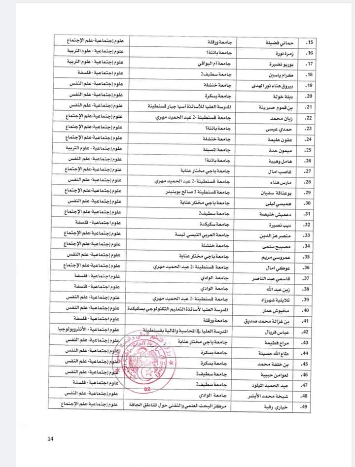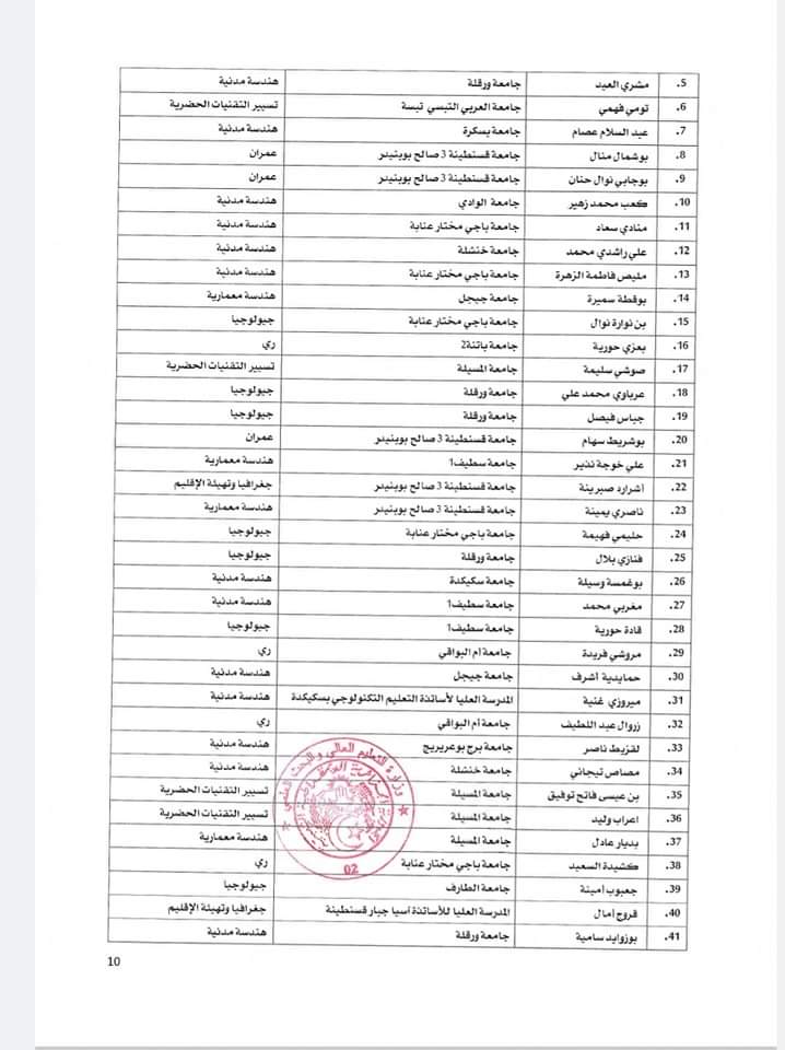 ويعتبر الأساتذة المحاضرون قسم “ب” المبينة ألقابهم وأسمائهم في القائمة، مؤهلين حسب الترتيب الاستحقاقي. للحصول على التأهيل الجامعي والترقية إلى رتبتي أستاذ محاضر قسم “أ”، وأستاذ بحث قسم “أ”.