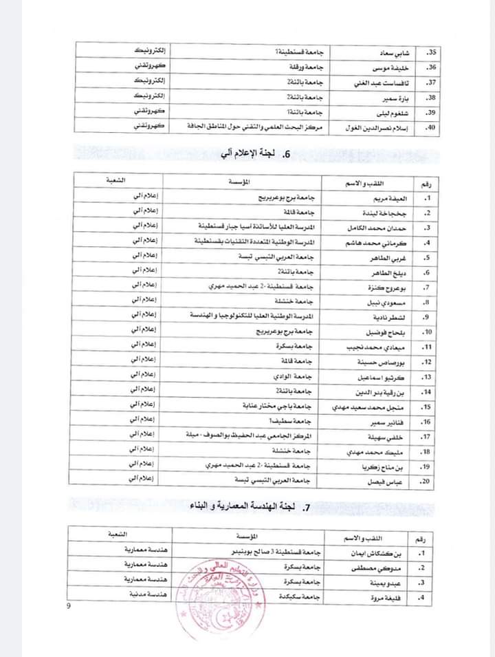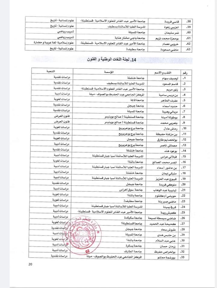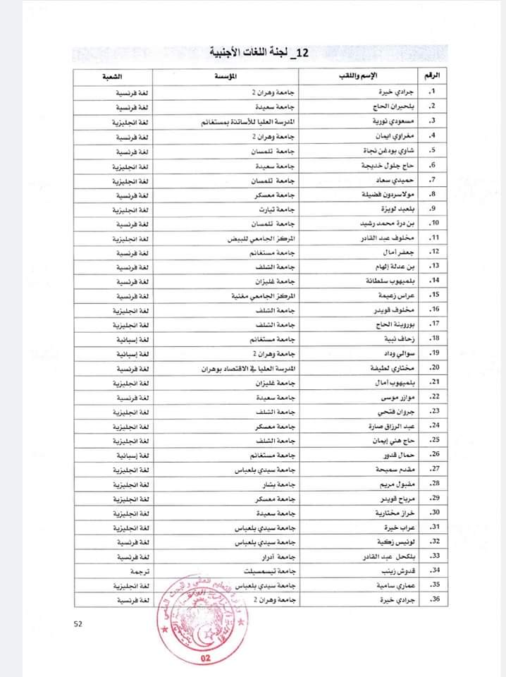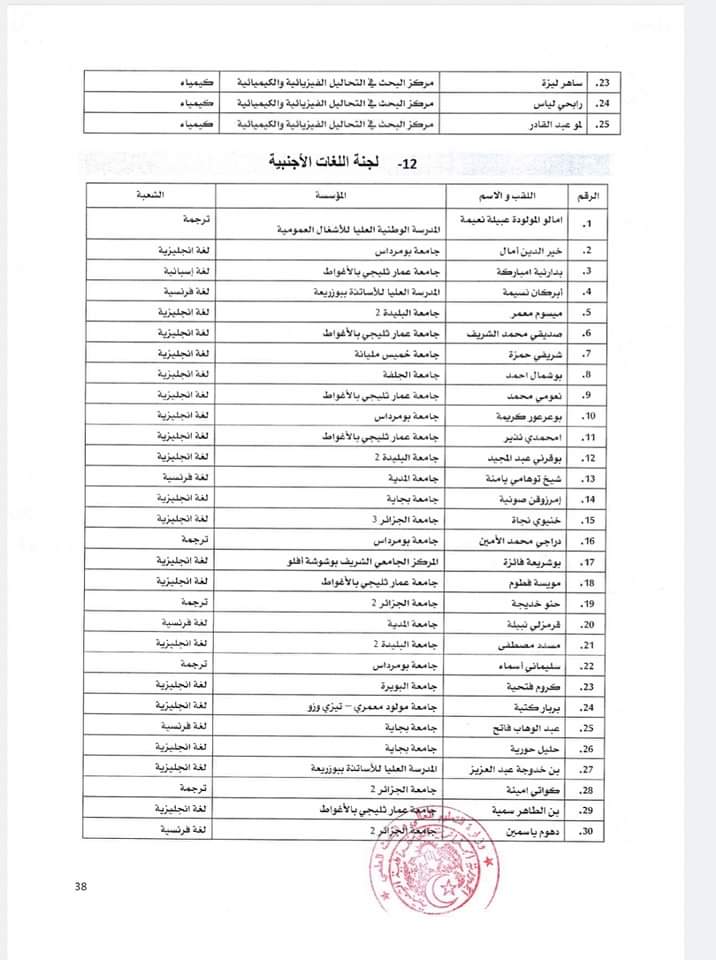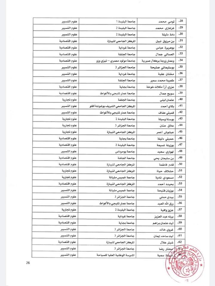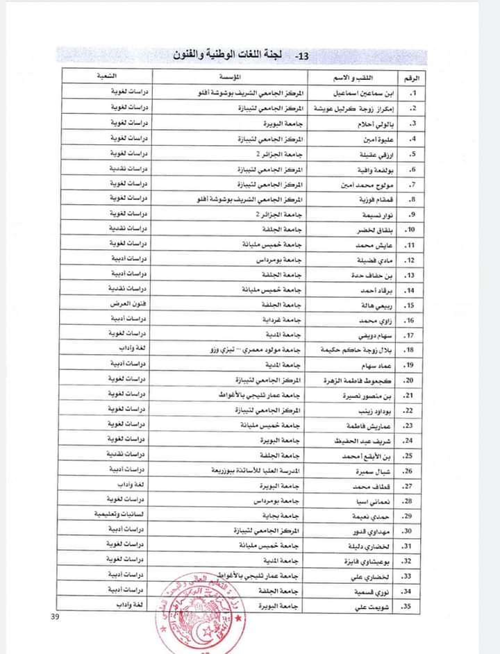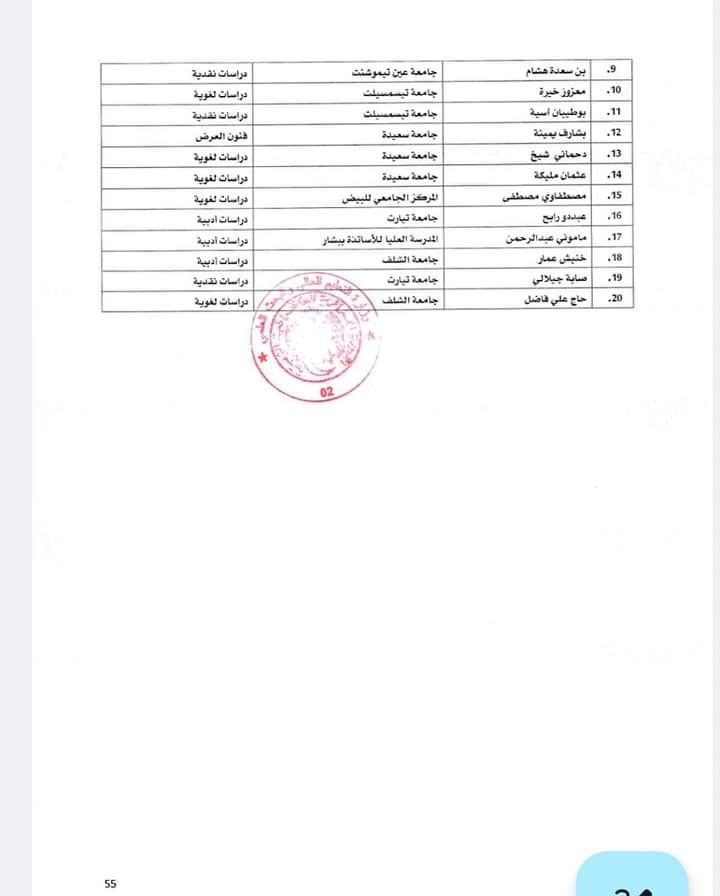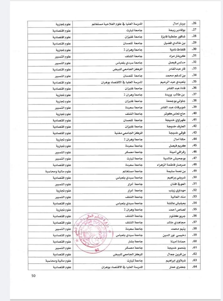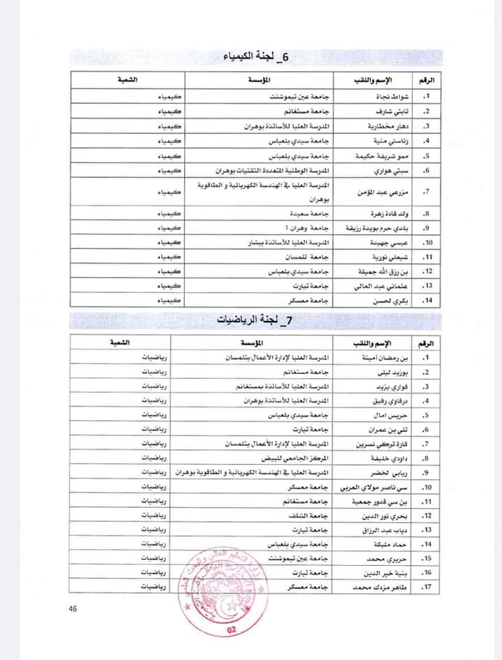 ويعتبر الأساتذة المحاضرون قسم “ب” المبينة ألقابهم وأسمائهم في القائمة، مؤهلين حسب الترتيب الاستحقاقي. للحصول على التأهيل الجامعي والترقية إلى رتبتي أستاذ محاضر قسم “أ”، وأستاذ بحث قسم “أ”.