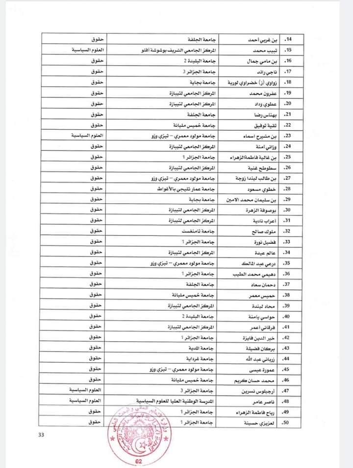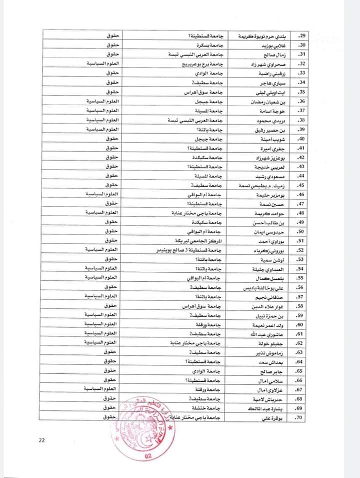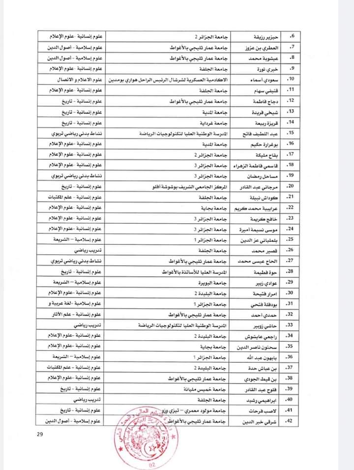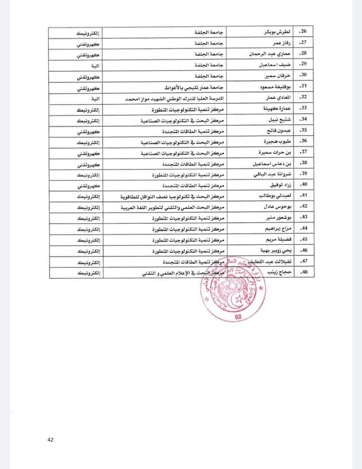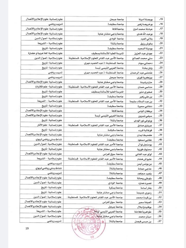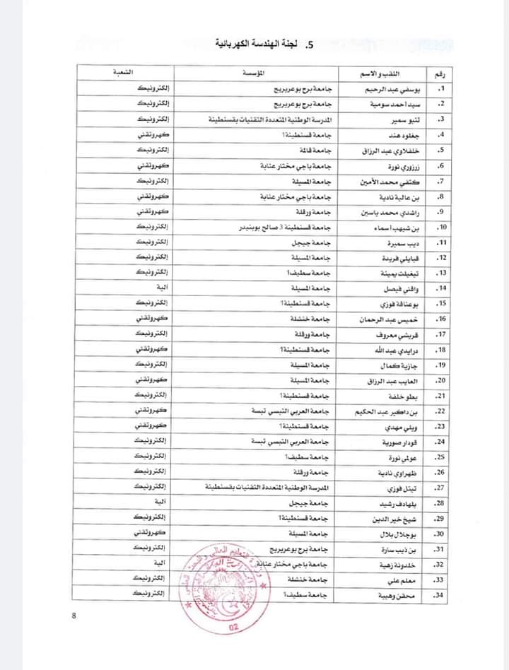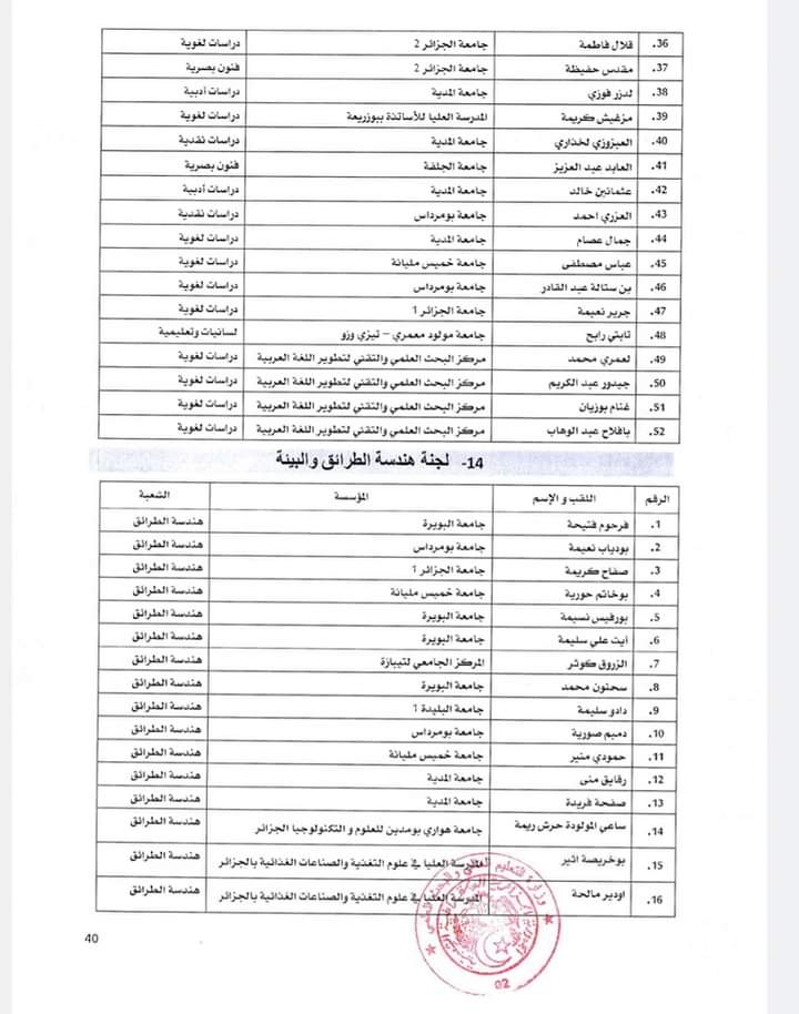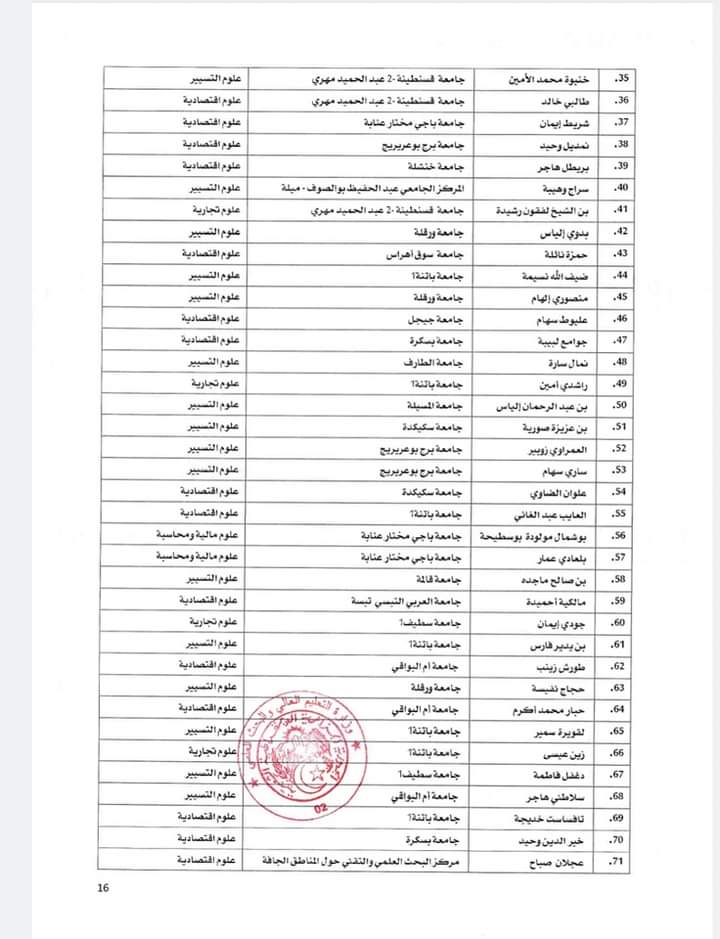 ويعتبر الأساتذة المحاضرون قسم “ب” المبينة ألقابهم وأسمائهم في القائمة، مؤهلين حسب الترتيب الاستحقاقي. للحصول على التأهيل الجامعي والترقية إلى رتبتي أستاذ محاضر قسم “أ”، وأستاذ بحث قسم “أ”.