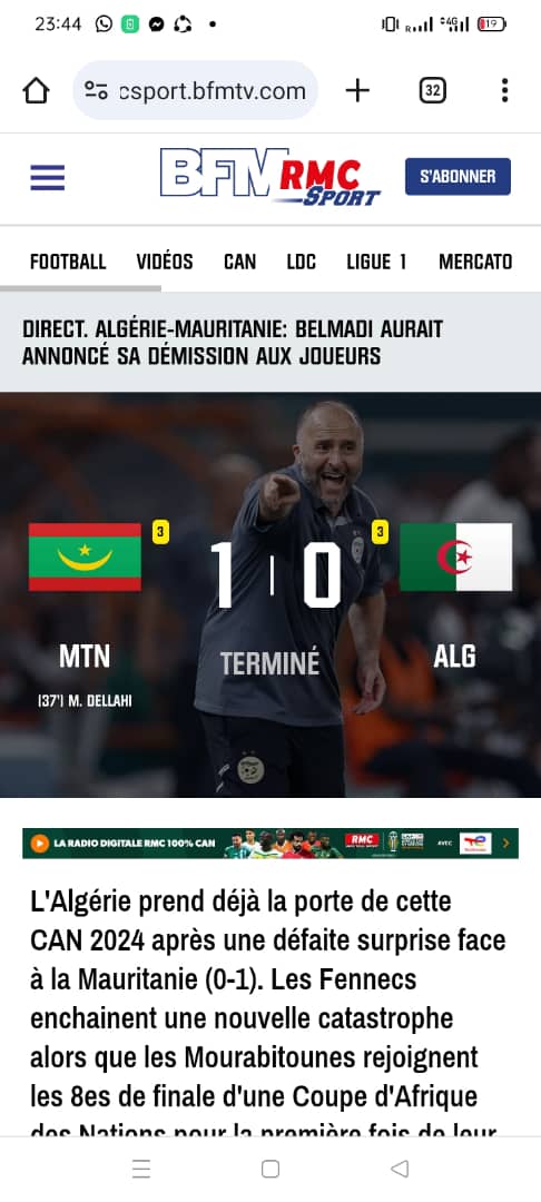 و كشف موقع “اونز مونديال” الفرنسي إلى جانب موقع “أر أم سي” عن استقالة بلماضي التي اخبر عنها اللاعبين في غرف تغيير الملابس.