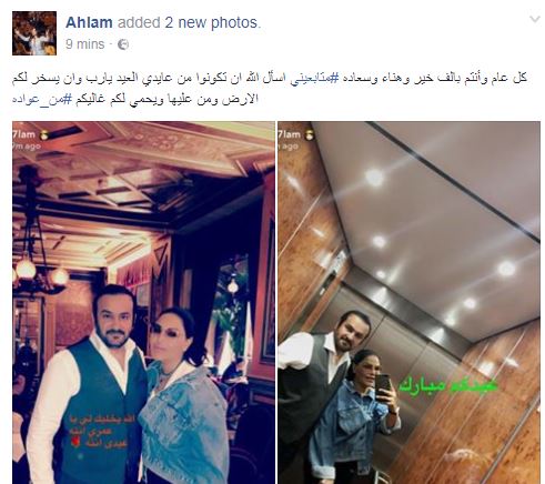 وقالت أحلام في تهنئتها التي أرفقتها بصور لها مع زوجها” كل عام وأنتم بألف خير وهناء وسعادة متابعيني اسأل الله أن تكونوا من عايدي العيد يارب وأن يسخر لكم الأرض ومن عليها ويحمي لكم غاليكم #من_عواده”.