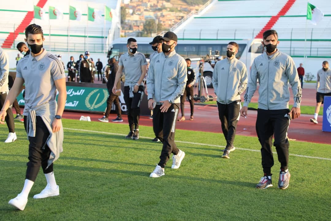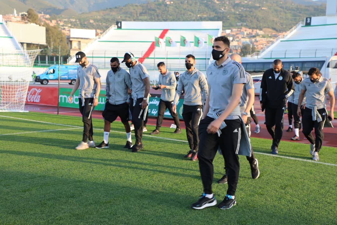 تفقد منذ قليل عناصر المنتخب الوطني الجزائري أرضية ملعب الشهيد مصطفى تشاكر بالبليدة قبل مواجهة بوتسوانا.