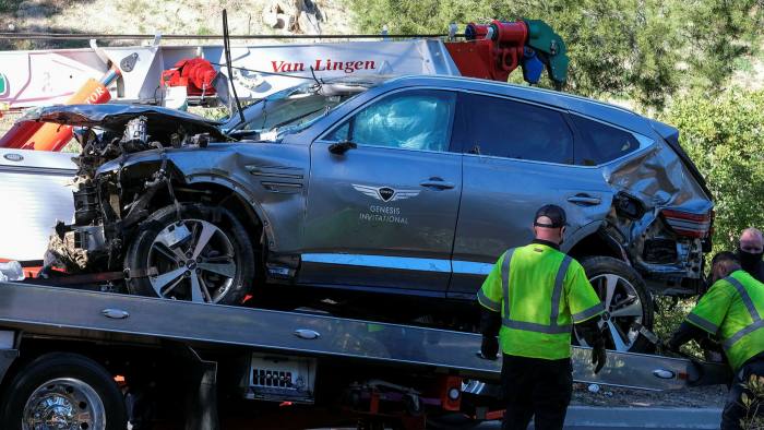 وقالت الشرطة، في بيان، إن سيارة وودز تعرضت لأضرار جسيمة، وتم انتشال وودز من الحطام بواسطة معدات ثقيلة استخدمها رجال الإطفاء والإسعاف.