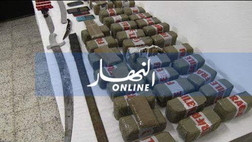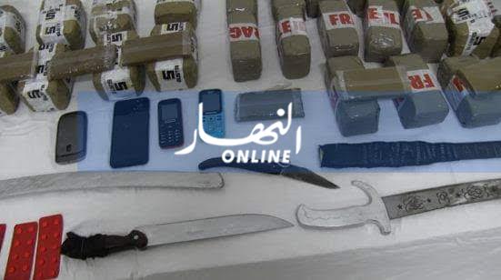 وكذا هواتف نقالة وأسلحة بيضاء سكاكين وسيوف مع حجز سيارة تابعة لذات الشبكة.