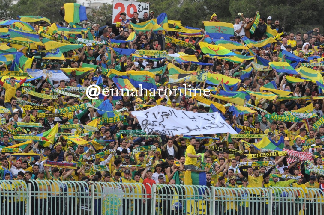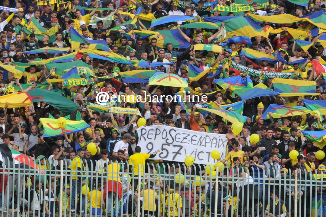 حمل أنصار فريق شبيبة القبائل العديد من اللافتات التي تحمل عبارات العزاء لعائلات ضحايا تحطم الطائرة العسكرية ببوفاريك.