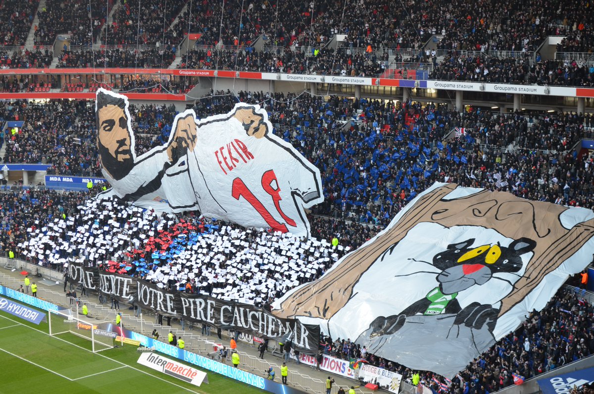 رفعت جماهير نادي “ليون” الفرنسي “تيفو” عملاق للنجم الفرانكو جزائري “نبيل فقير” قبل إنطلاق الداربي الذي جمع فريقهم بسانت إيتيان.