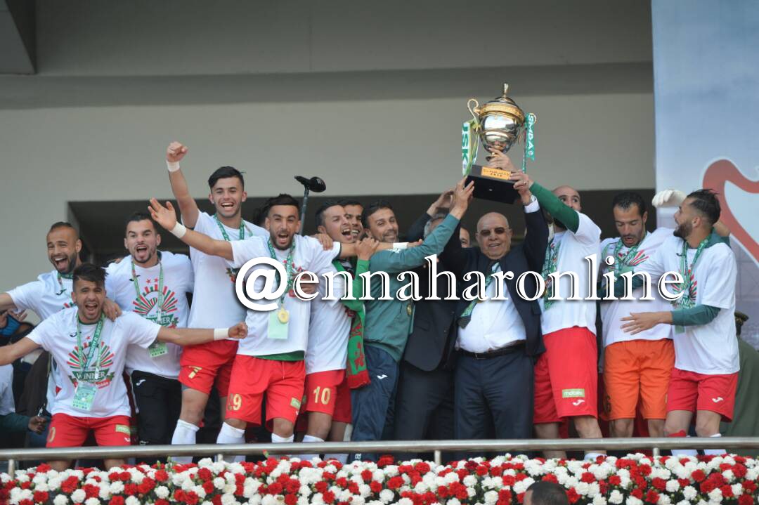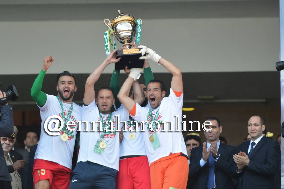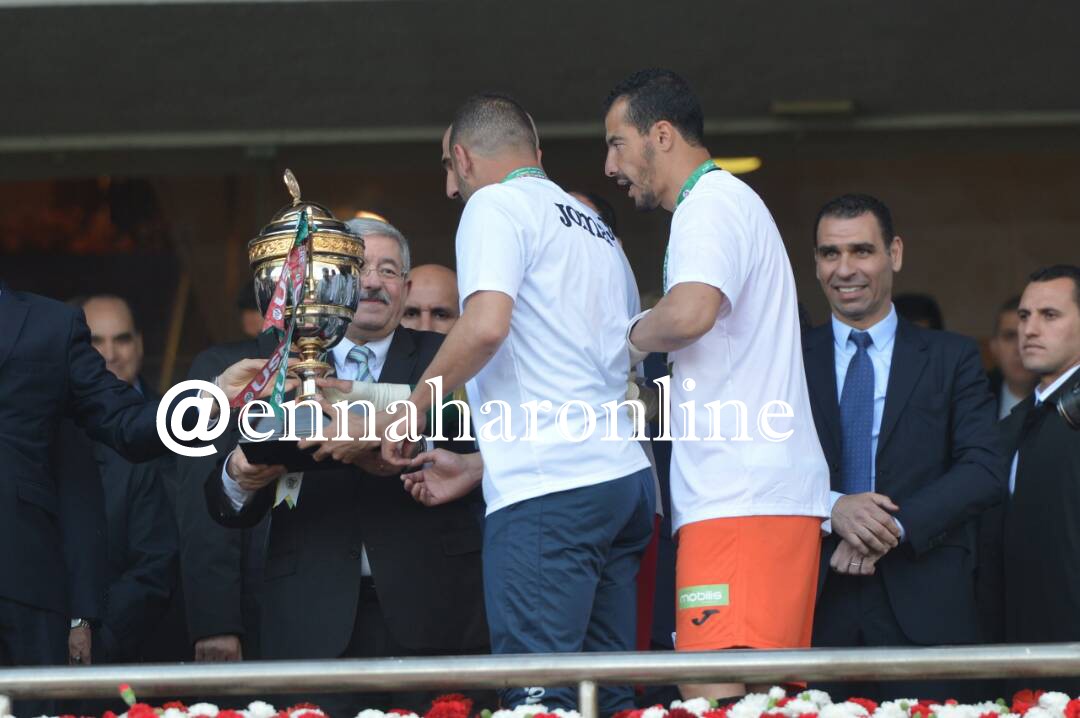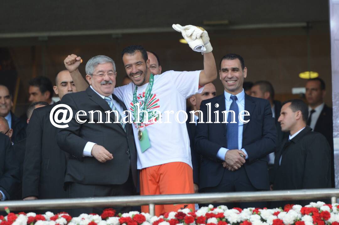 وإستلم قائد الفريق بن عبد الرحمان مجسم الكأس من الوزير الأول رفقة كل من بن قورين، والحارس طوال.