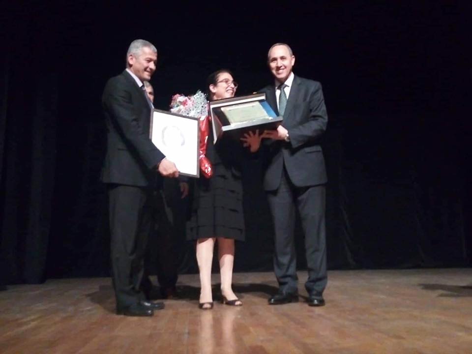 في كلمتها قبل تسلمها نفس الجائزة من عز الدين ميهوبي وعبد الكريم