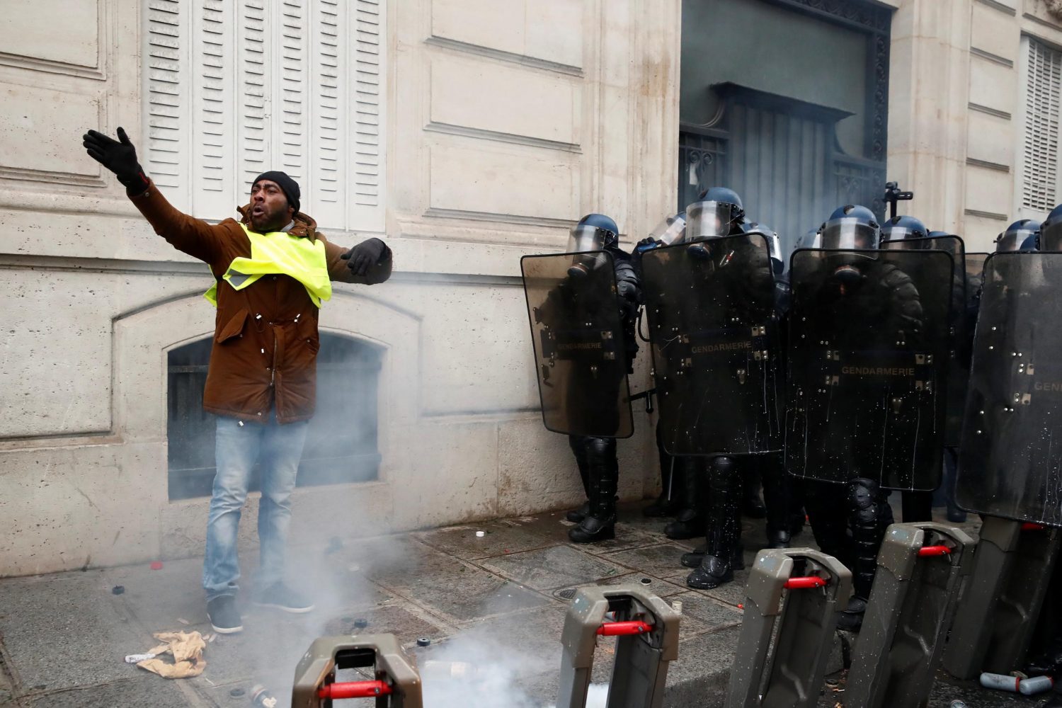 وقد أصيب عشرات المتظاهرين من السترات الصفراء، بعد اشتباك مع الشرطة الفرنسية.