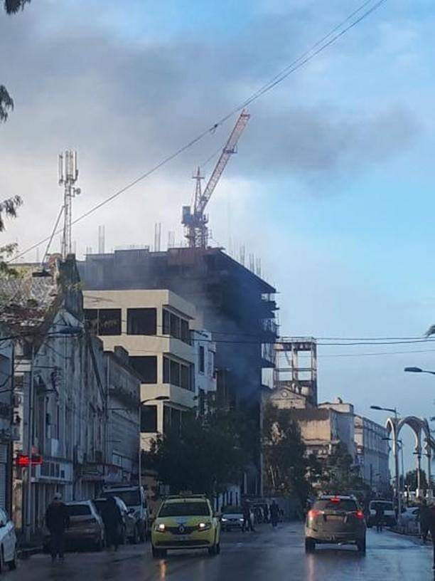 بالصور..إنقاذ عمال صينيين بعد حريق مهول داخل بناية بعنابة