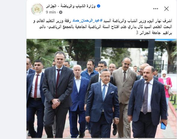 وكشفت وزارة الشباب والرياضة، عبر صفحتها الرسمية على “فيسبوك”. بأن افتتاح السنة الرياضية الجامعية، 2024-2025، كان من المجمع الرياضي - دالي براهيم “جامعة الجزائر 3”.