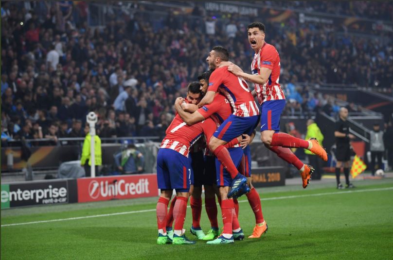 أنهى نادي أتلتيكو مدريد الإسباني الشوط الأول مُتفوقا بهدف دون رد على فريق أولمبيك مارسيليا الفرنسي في نهائي منافسة كأس الدوري الأوروبي.