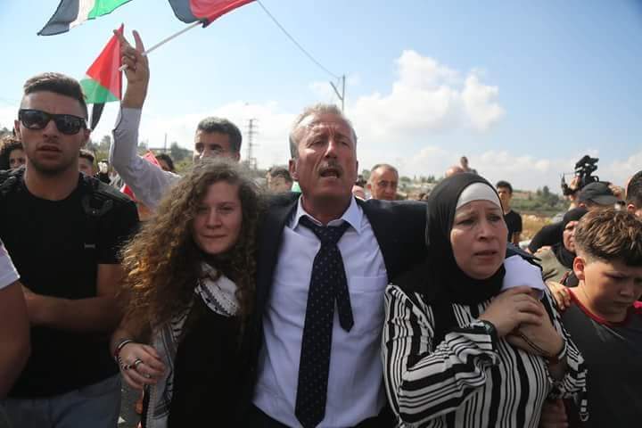 وكان في انتظار رمز المقاومة الفلسطينية، عهد التميمي، المسجونة بتهمة إعاقة عمل ومهاجمة الجنود الإسرائيليين، عشرات الصحفين والشباب الفلسطيني.