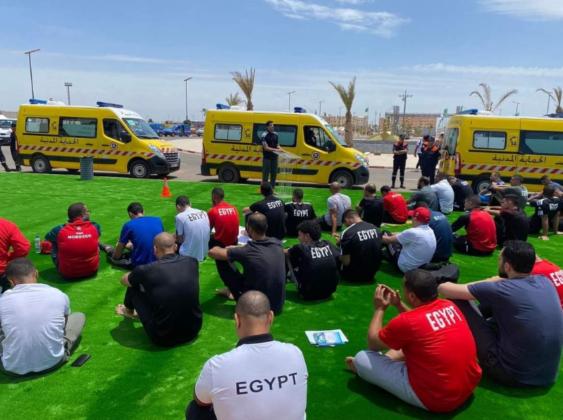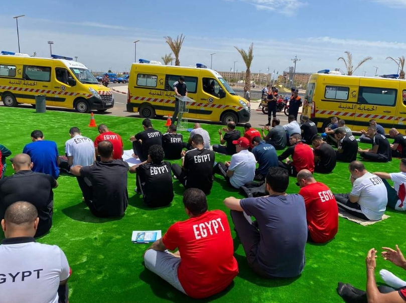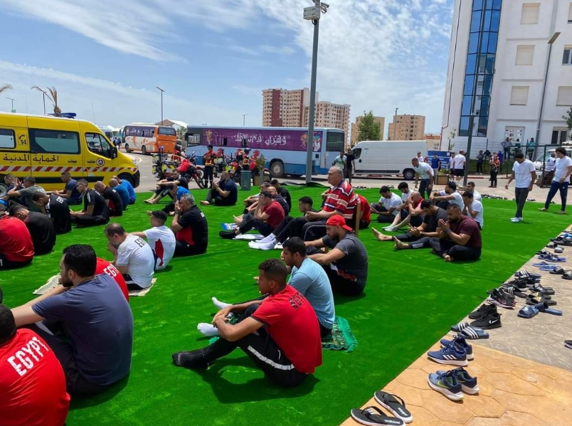 وكان وفد الرياضيين المصريين على رأس البعثات العربية، التي اجتمعت بمدخل القرية المتوسطية لتأدية صلاة الجمعة.