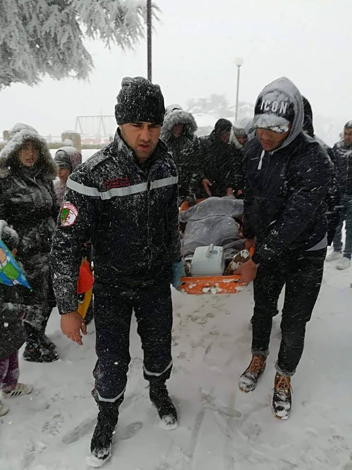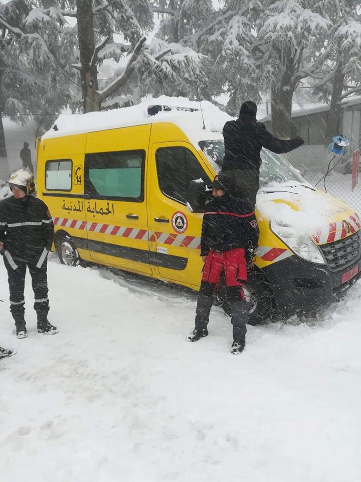 حيت تقوم مصالح الحماية المدنية بعمليات إسعاف وإزاحة ثلوج ومساعدة المركبات.