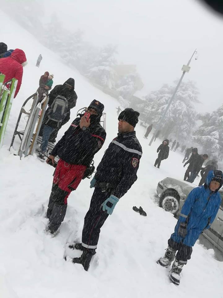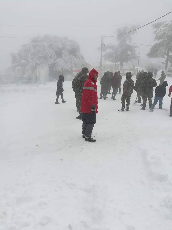 كما تتواجد مفرزة من الجيش لمساعدة السيارات العالقة على الخروج من الثلوج الكثيفة التي تغطي المنطقة.