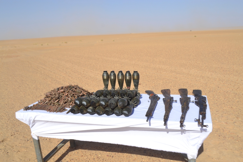 وحسب بيان لوزارة الدفاع الوطني، اليوم الجمعة، فإن المخبأ يحتوي على بندقية نصف آلية من نوع سيمونوف، و 3بنادق تكرارية و30 قذيفة هاون عيار 82 ملم و3134 طلقة نارية.