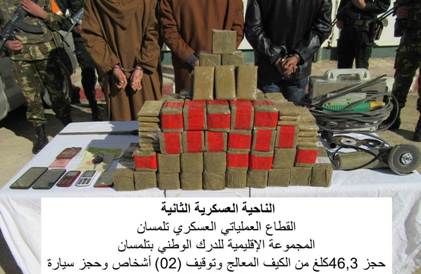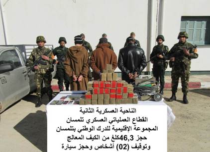 فيما أوقفت مفارز مشتركة للجيش الوطني الشعبي، 6 تجار مخدرات وحجزت 56,3 كيلوغرام من نفس المادة بكل من تلمسان ووهران.