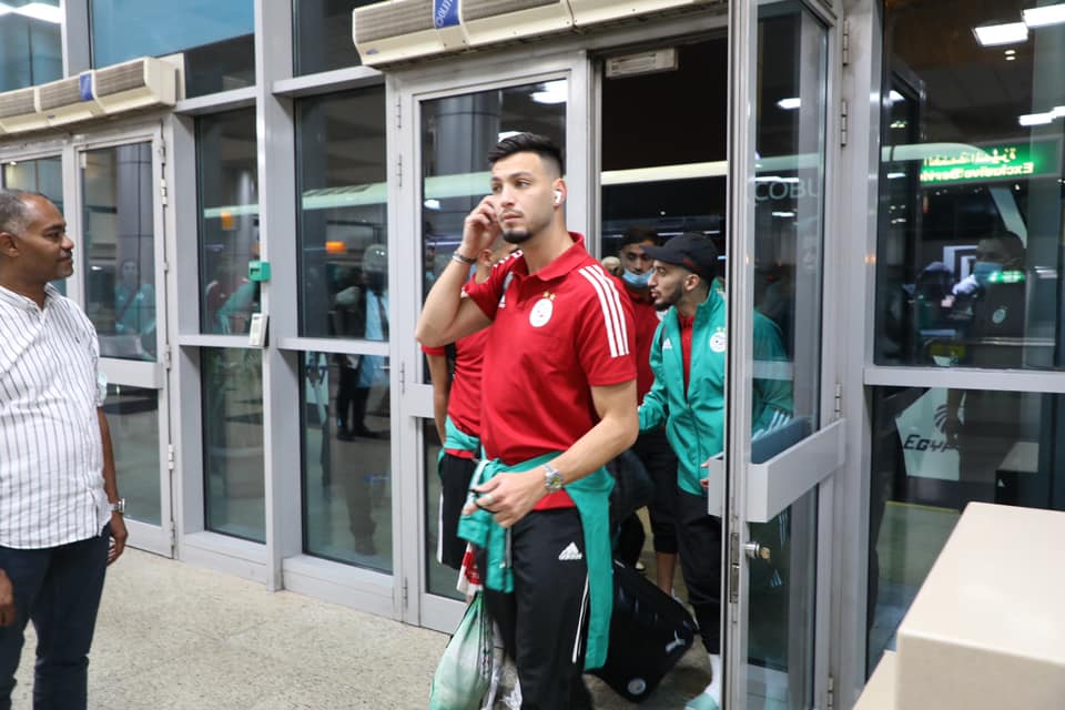 الصفحة الرسمية للاتحاد الجزائري لكرة القدم على موقع التواصل الاجتماعي “فايسبوك” نشر صور وصول بعثة الخضر، وأرفقها بعبارة:”لحظة وصول محاربينا إلى مطار القاهرة”.