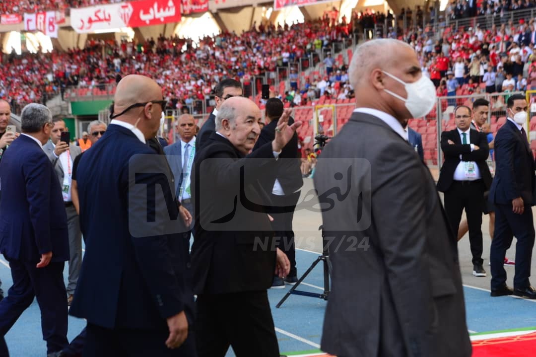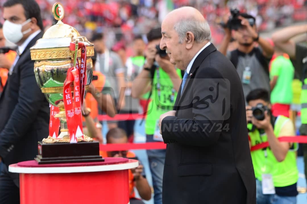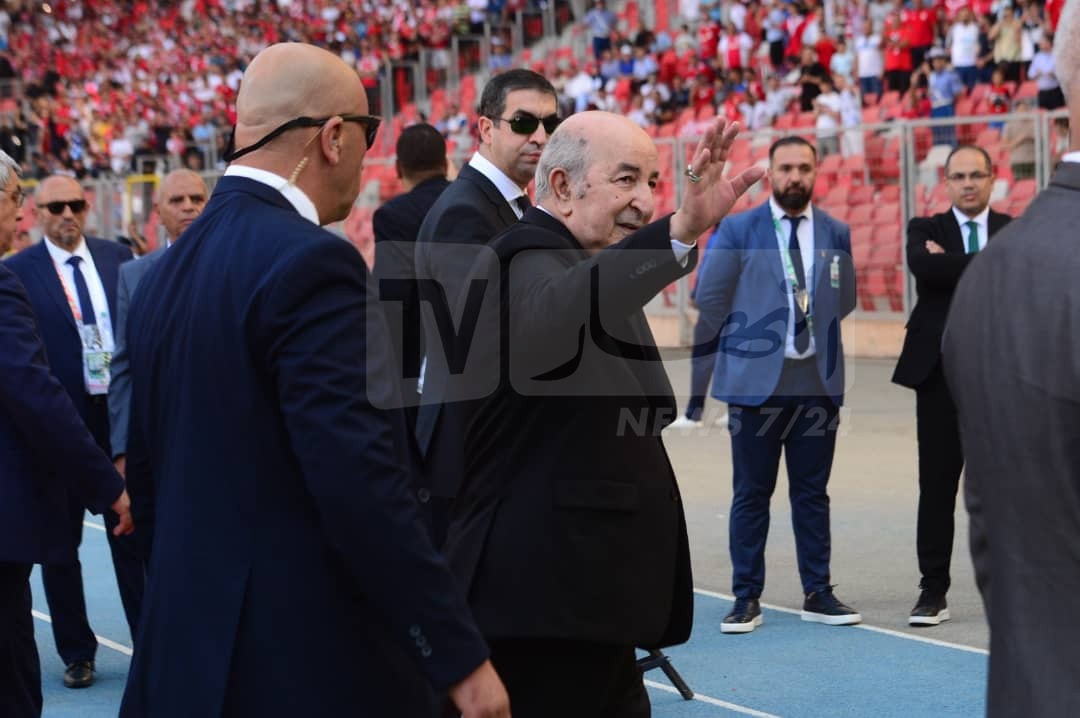 كما ألقى الرئيس عبد المجيد تبون على الجمهور الحاضر في المدرجات وسط تجاوب كبير من انصار الفريقين.