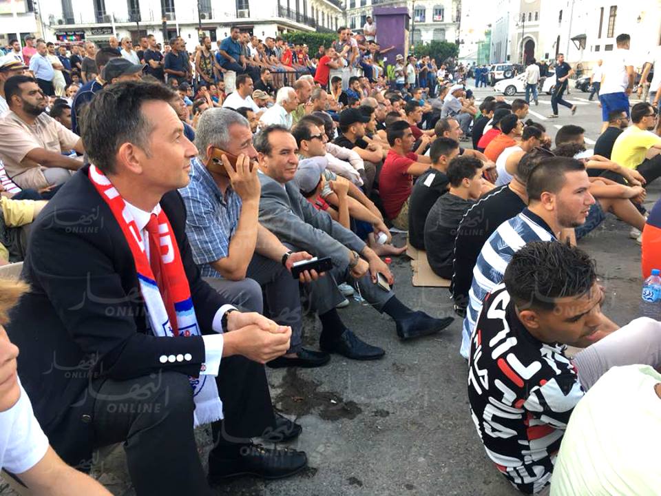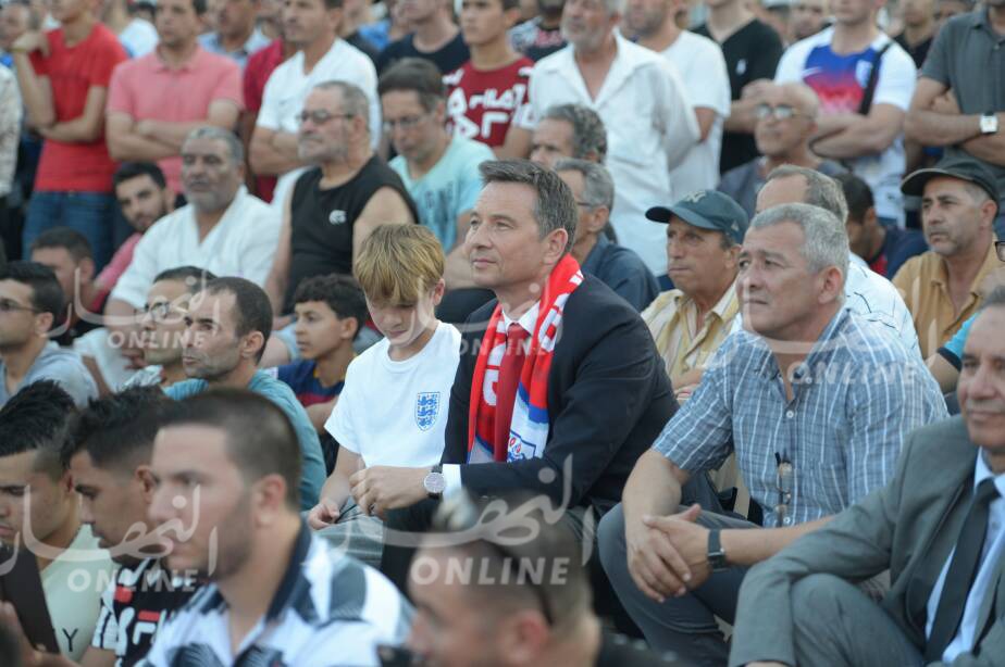 وظهر السفير وسط الجماهير الجزائرية رفقة نجله ورئيس بلدية الجزائر الوسطى.