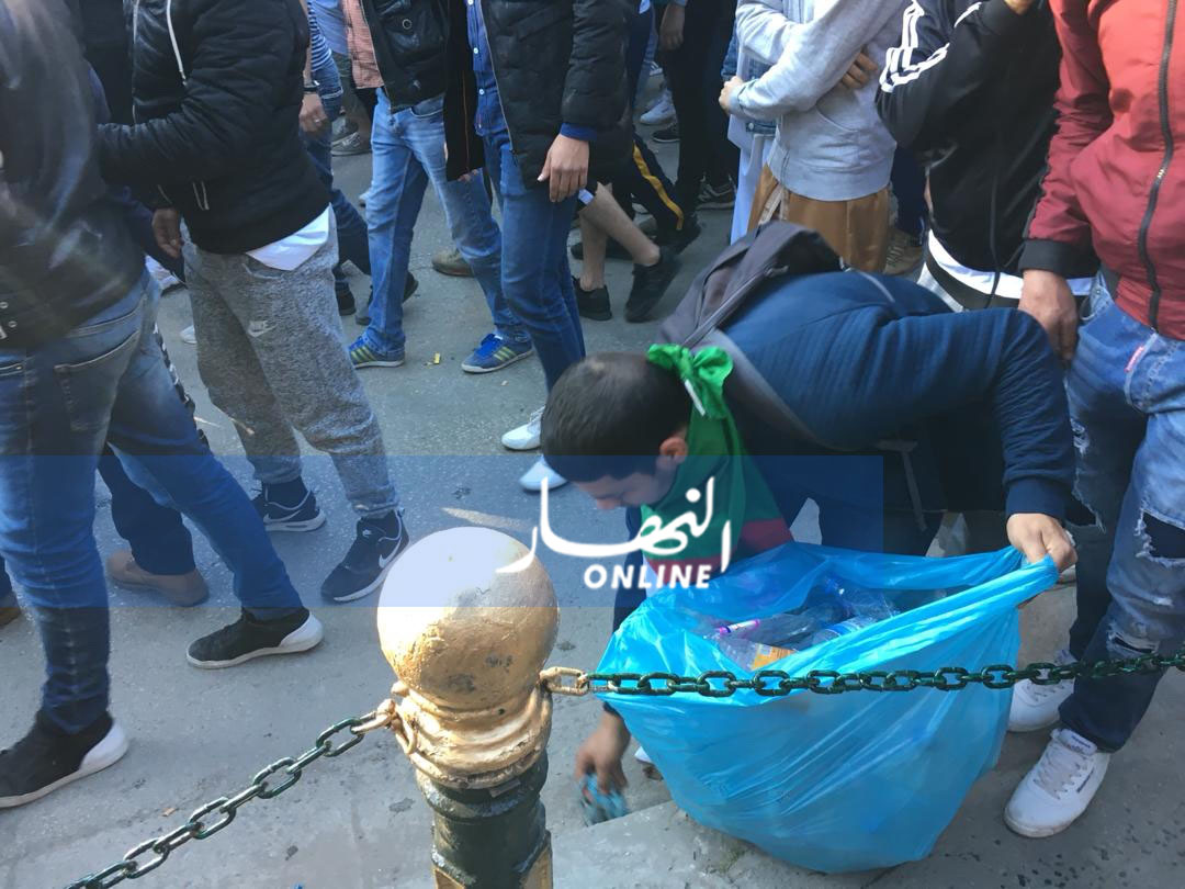 حيث أحضر مواطنون مشاركون في المسيرات معهم سلل مهملات مكتوب عليها شعارات عدم رمي النفايات وتركها في الشوارع.