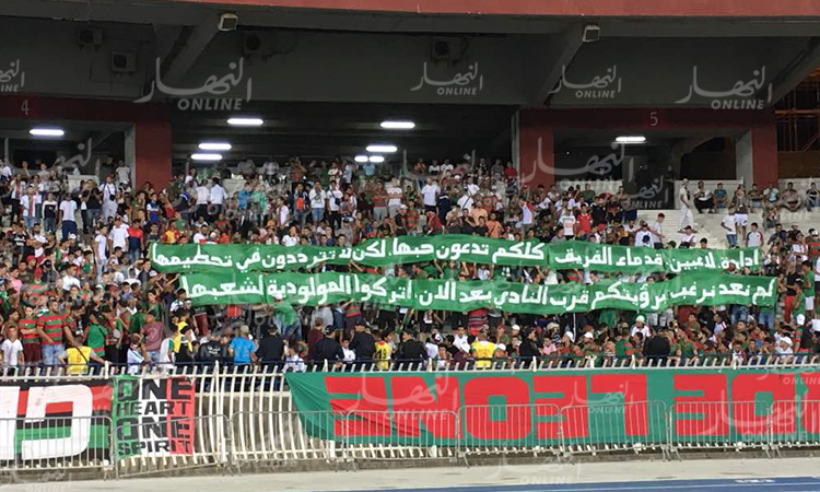 وعبر الشناوة عن غضبهم بطريقتهم الخاصة بعد أن رفعوا لافتة كُتب فيها:”إدارة، لاعبين، قدماء الفريق كلكم تدعون حُبها لكن لا تترددون في تحطيمها..لم نعد نرغب برؤيتكم قرب النادي بعد الآن، إتركوا المولودية لشعبها”.