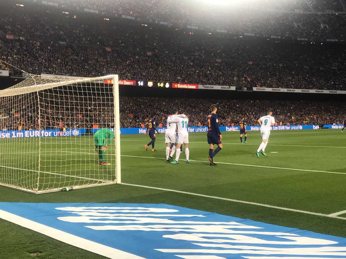إنتهى الشوط  الأول من الكلاسيكو الذي يجمع برشلونة بالضيف ريال مدريد بملعب “الكامب نو” بالتعادل الإيجابي بهدف لهدف.