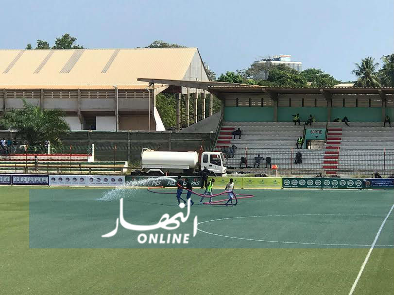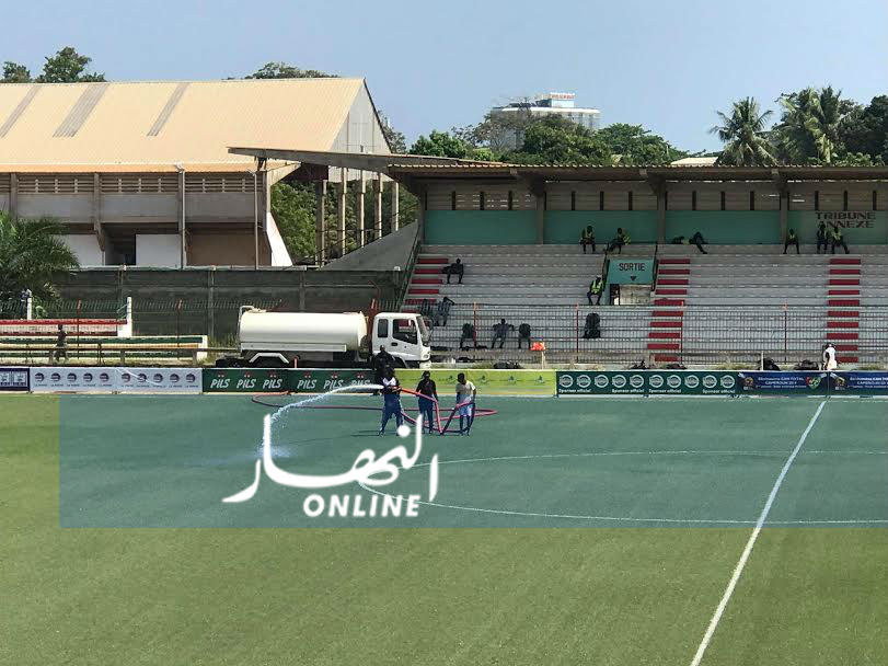 ورصدت كاميرات تلفزيون النهار إقدام إدارة الملعب على رش أطراف الملعب المعشوشبة إصطناعيا، خصوصا في حالة الطقس الحارة التي تجعلها أكثر صلابة.