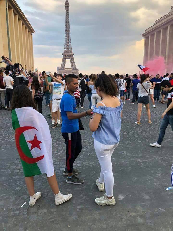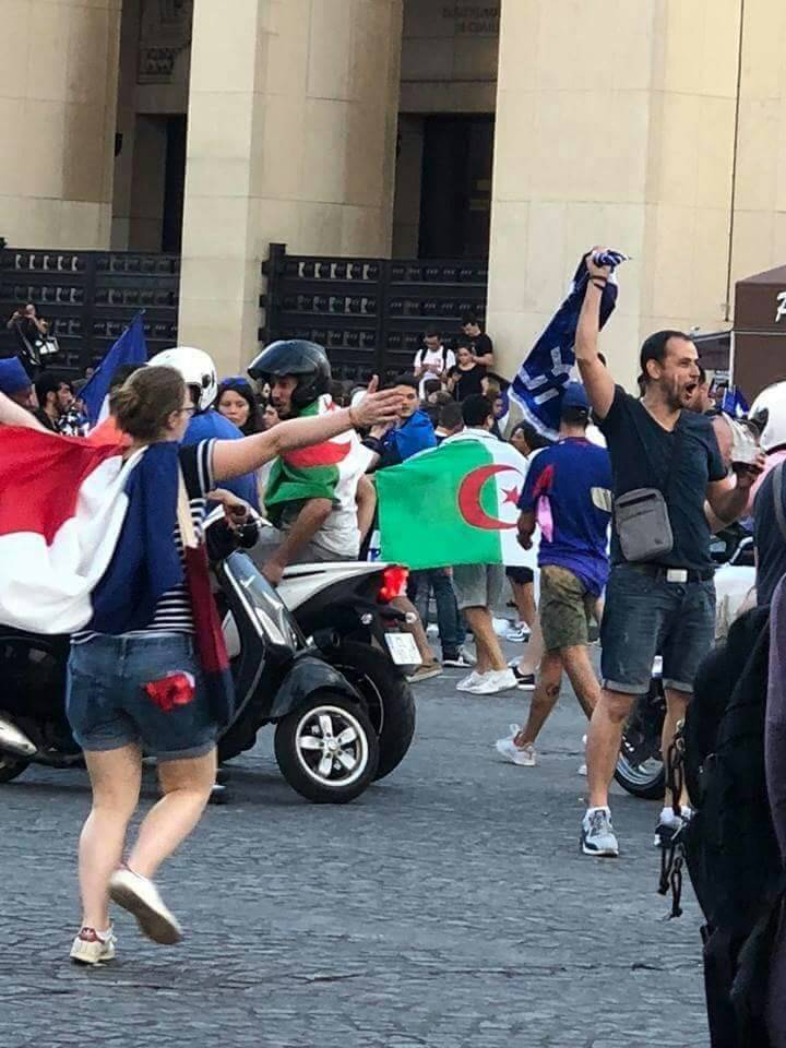 شهدت إحتفالات الجماهير الفرنسية بتتويج منتخب بلادها بكأس العالم، مشاركة كبيرة من الجزائريين بالعاصمة باريس.