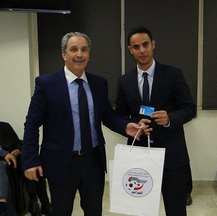 وجرى تسليم شارة الحكم الدولي، بمقر “الفاف”، وبحضور الأمين العام للفاف محمد سعد، رئيس اللجنة الفيدرالية للتحكيم محمد غوتي، وثلاثة أعضاء من المكتب الفيدرالي.